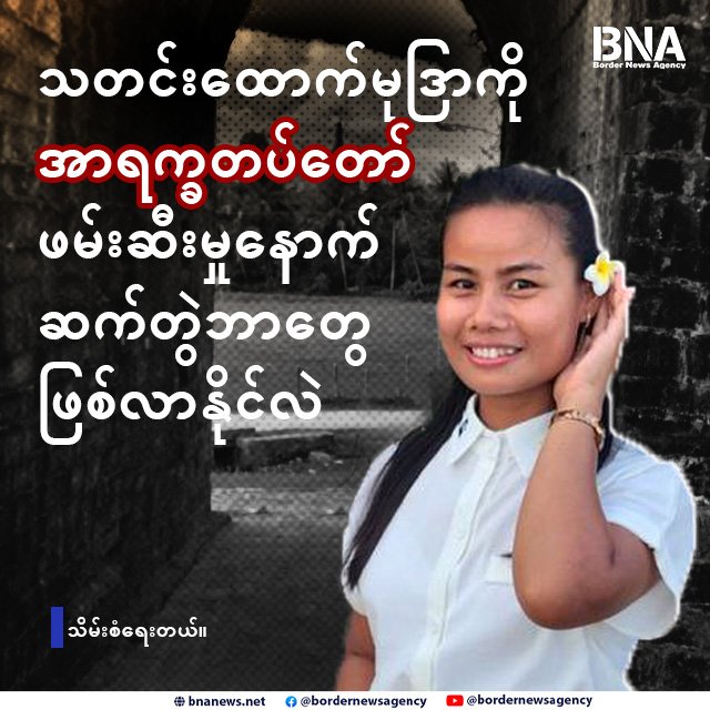 Read moreBorder News Agencyနေပြည်တော်၊ အောက်တိုဘာ ၁၃။ စစ်ကော်မရှင်ပြုလုပ်မယ့် တနိုင်ငံလုံးပစ်ခတ်တိုက်ခိုက်မှု ရပ်စဲရေးသဘောတူစာချုပ်(NCA)ဆယ်နှစ်ပြည့် နှစ်ပတ်လည်အခမ်းအနားသို့ UN၊...