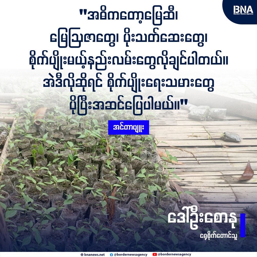 “ငရုတ်ခင်းနဲ့ပတ်သတ်ပြီးတော့ စိုက် ပျိုးရေးသမားကတော့ ဒုက္ခခံရတယ်။ တနှစ်တလေ မဖြစ်ထွန်းဘူးဆိုရင်လ ည်း ဆုံရှုံးမှုတွေ ရှိသွားတတ်တယ်။နှစ် စဉ်ကတော့ ဒီအလုပ်ကို ရိုးရိုးစိုက်စိုက်လုပ်စားလာကြတာပါ။ဒီငရုတ်စိုက်ပျိုး ရေးကို မှီခိုပြီးတော့ စားသောက်လာတာပါပဲ။အဓိကကတော့ မြေဆီ၊မြေဩဇာ၊ပိုးသတ်ဆေးတွေ၊ စိုက်မယ့်နည်း စနစ်တွေ အဲဒါတွေကို ပြစေချင်တယ်။ အကူအညီအထောက်အပံ့ ပေးစေချင်တယ်။”