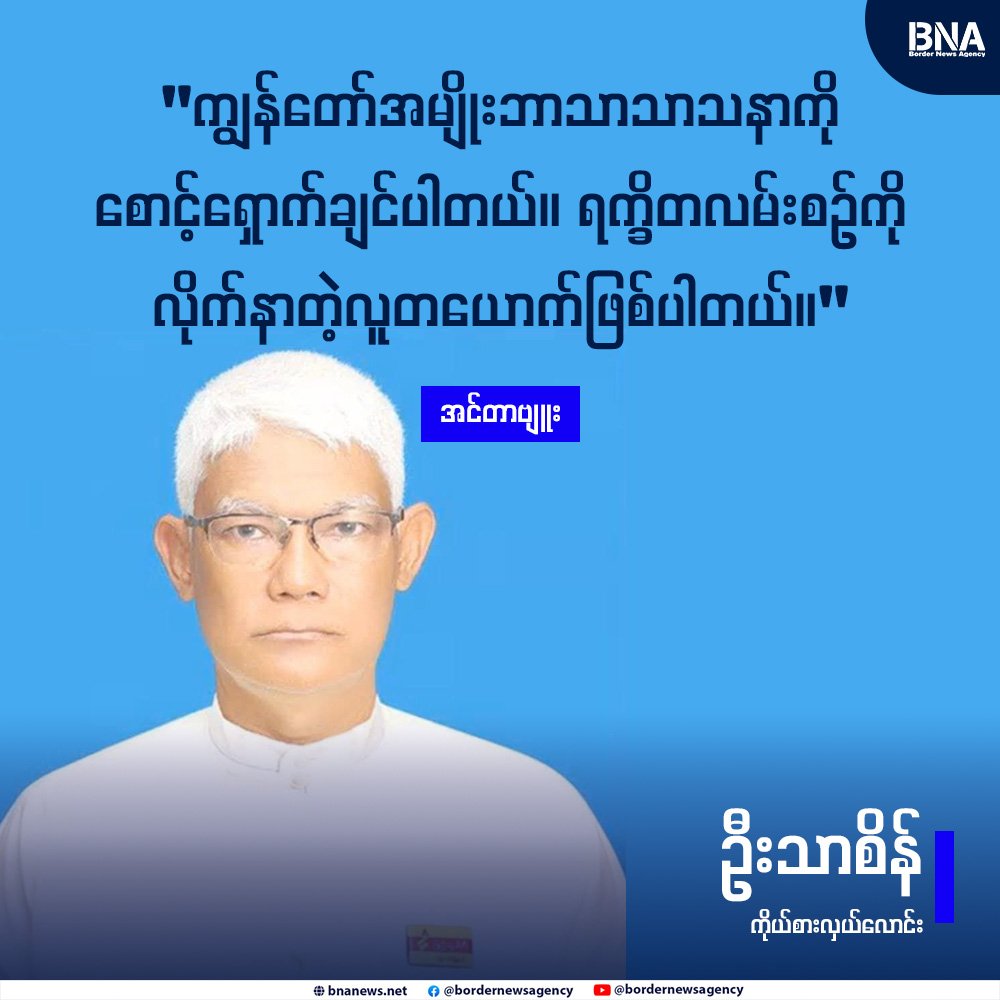 “ကျွန်တော်အမျိုးဘာသာသာသနာကိုစောင့်ရှောက်ချင်ပါတယ်။ရက္ခိတလမ်း စဉ်ကိုလိုက်နာတဲ့လူတယောက်ဖြစ်ပါတယ်။”