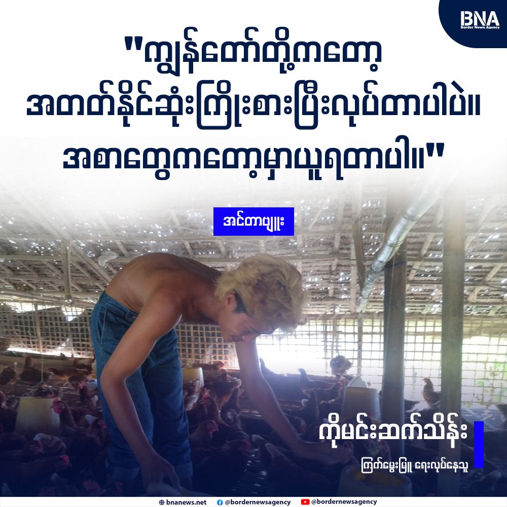 “ပိုက်ဆံကလည်းလိုက်နိုင်ဖို့လိုပါတယ်။ ကျွန်တော်တို့မှာက ဟိုကနည်းနည်း၊ ဒီကနည်းနည်းနဲ့ယူလို့ပေးရပါတယ်။ အစာကြမ်းတွေလည်းပေးရပါတယ်။ ဆေးတွေလည်းလိုက်ပေးရပါတယ်။ ကြက်လေးတွေကျန်းမာဖို့အတွက်လည်း ကျွန်တော်တို့မှာကြည့်ရပါတယ်။ အစာရေစာတွေလည်းဝဖို့လို့ပါတယ်။ ကြီးလည်းကြီးထွားဖို့လိုပါတယ်။”