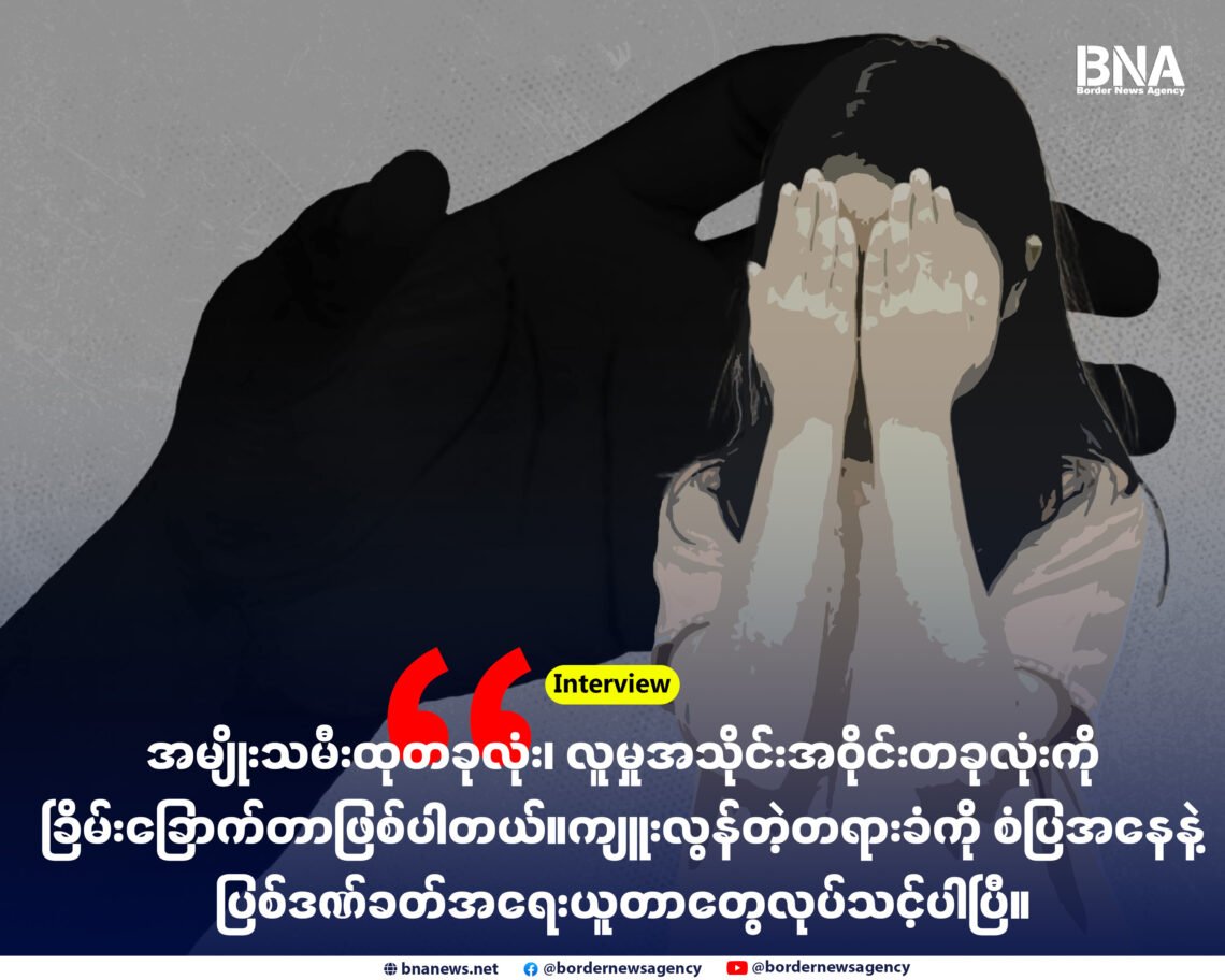 ပြည်သူလူထုအတွင်းမှာလည်း ဂျန်ဒါအခြေပြုအကြမ်းဖက်မှုအသိပညာပေးလှုပ်ရှားမှုတွေအပြင် မီဒီယာတွေအနေနဲ့လည်း ပြည်သူလူထုကို လွှမ်းမိုးနိုင်တော့ အသိပညာပေးတင်ဆက်တာမျိုးတွေပါလုပ်သင့်ပါတယ်။