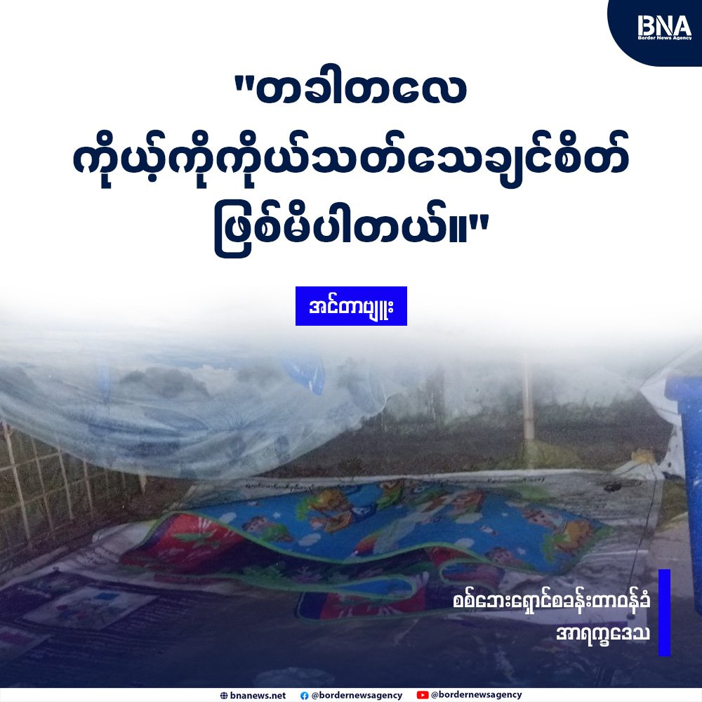 “စစ်ဘေးရှောင်အနေနဲ့အခက်အခဲက တော့ လုံးဝစိတ်ကုန်သွားပါပြီ။စာသင်တာအဆင်မပြေပါဘူး။ကျန်းမာရေးကပိုဆိုးပါသေးတယ်။ကလေးတွေက ခ ဏနေရင်ဖျားနေပါပြီ။သွေးလွန်တုတ်ကွေးဖြစ်နေပါပြီ။ပိုက်ဆံကလည်းမရှိပါဘူး။တခါတလေ ကိုယ့်ကိုကိုယ်သတ်သေချင်စိတ်ဖြစ်မိပါတယ်။”