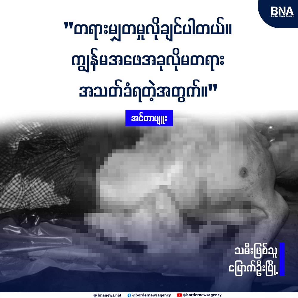 “သားသမီးတွေက တခုမှလည်းဆက်သွယ်မှုမရှိပါဘူး။ အမေဖုန်းဆက်ပြီး ဗွီဒီယိုကောနဲ့ပြောမှပဲ အဖေသေတာကိုသိတာပါ။မဟုတ်ရင် မသိသေးပါဘူး။ညဥ့်တနာရီလေးဆယ်လောက်မှာ ဖုန်းခေါ်ထားပါတယ်။ကျွန်မကလည်းကလေးနဲ့ဆိုတော့ မသိလိုက်ဘူး။မနက်မိုးလင်းခုနှစ်နာရီလောက်မှာ ဆိုင်ဖွင့်မလို့ထတာနဲ့သိရတာပါ။”