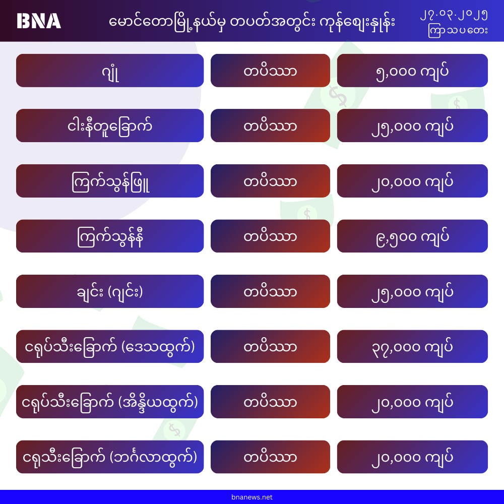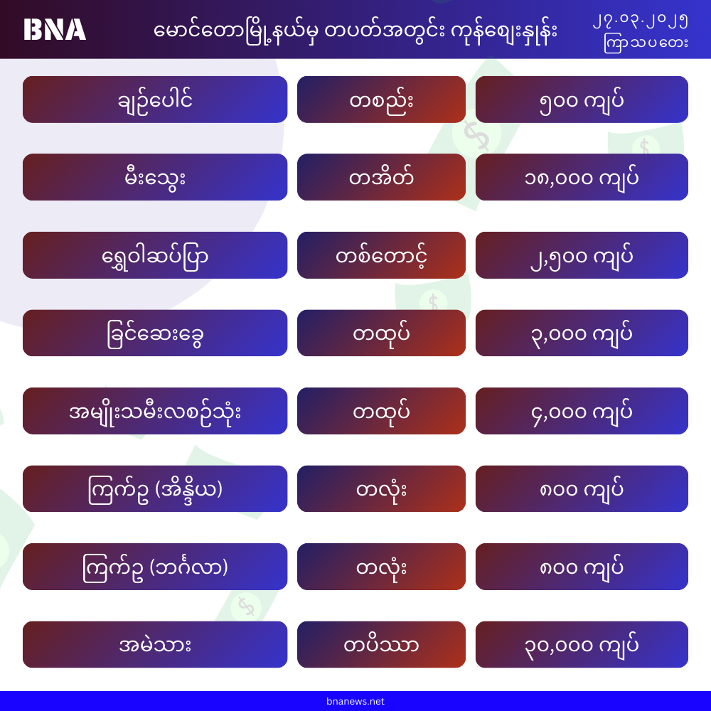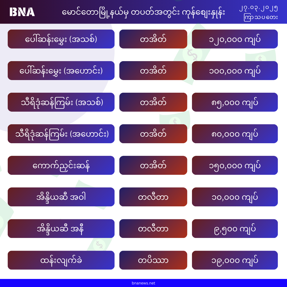 မောင်တောမြို့မှကုန်စျေးနှုန်းတချို့