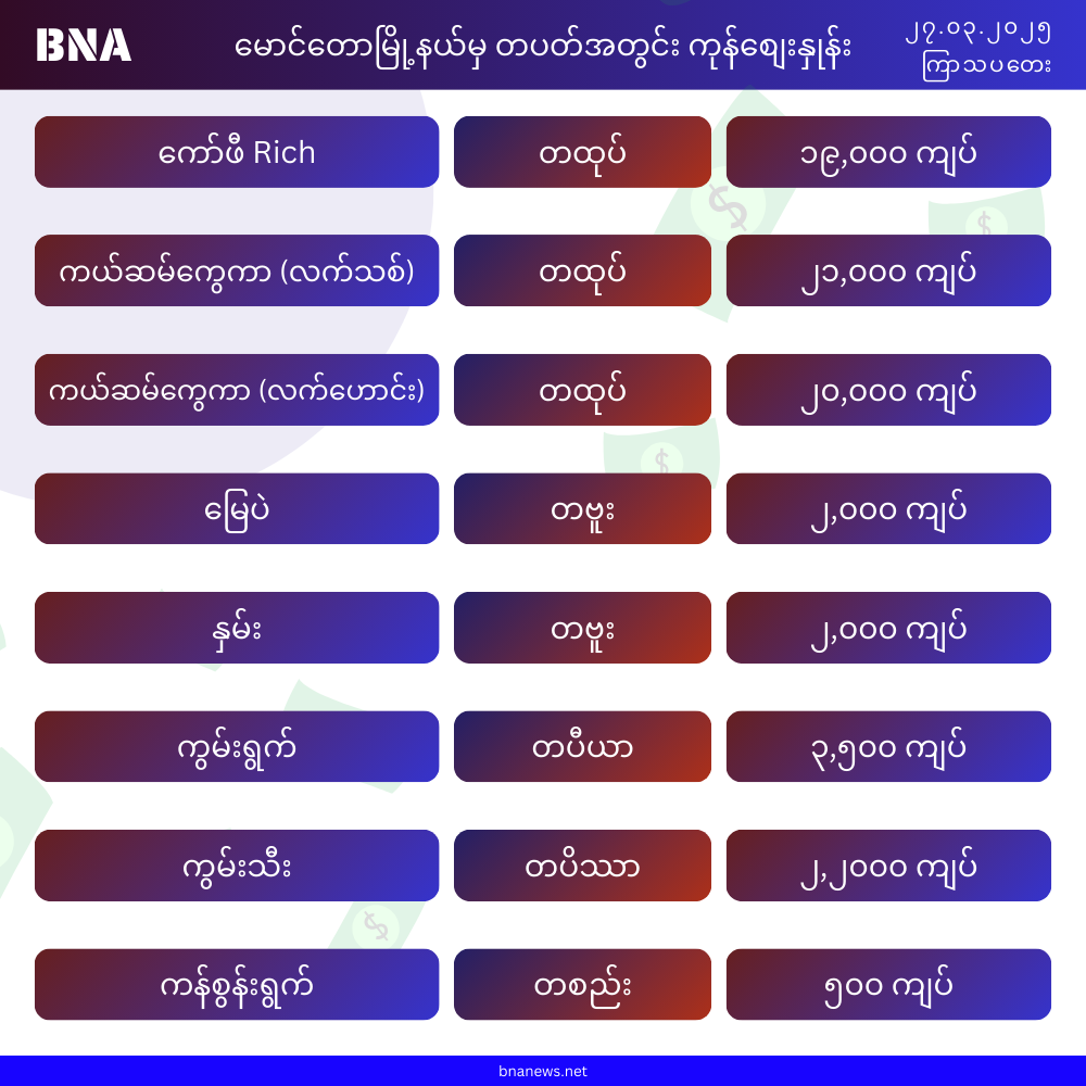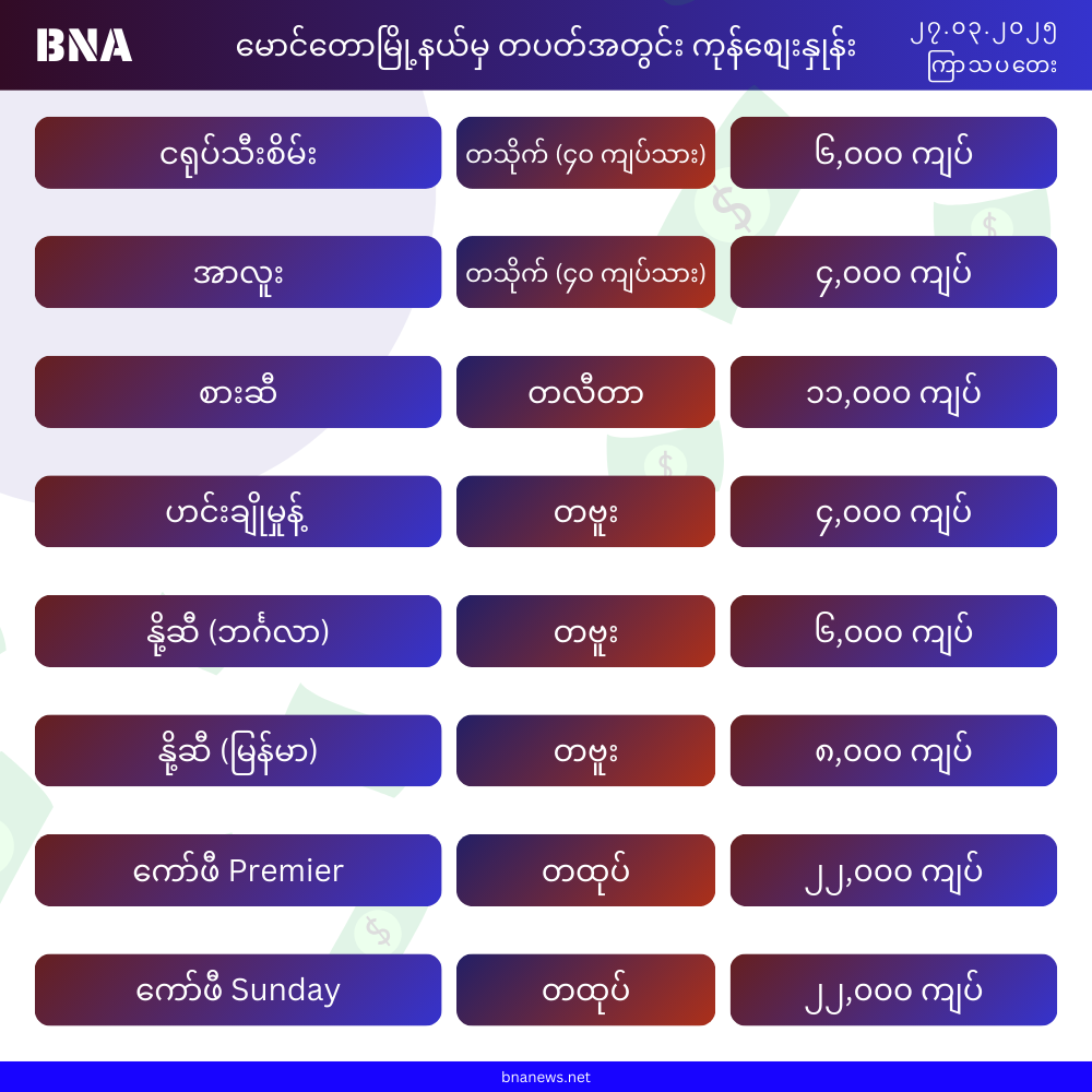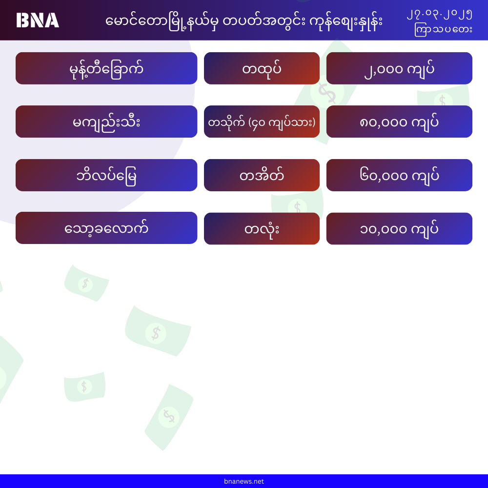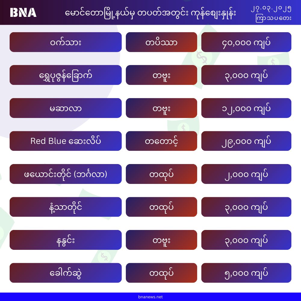 မောင်တောမြို့မှကုန်စျေးနှုန်းတချို့