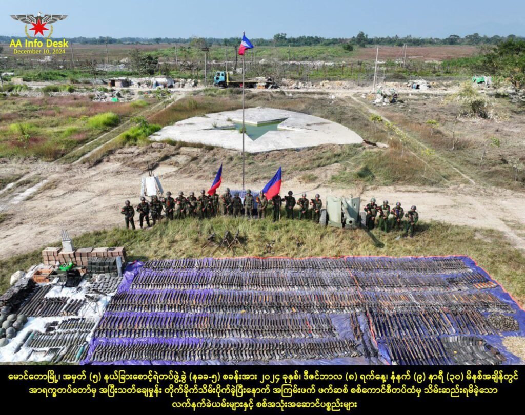 (ဓာတ်ပုံ - အာရက္ခတပ်တော်သိမ်းပိုက်ထားတဲ့နတ်ရေကန်ဗျူဟာကုန်းကြီးမှကမ္ဘာ့လုံးအထိုင်ကာကင်းစခန်းကြီး / AA)