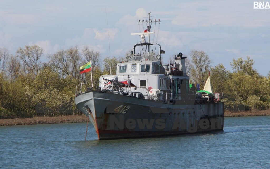 (ဓာတ်ပုံ – စစ်တွေမြို့၊ ရွှေမင်းဂံရေတပ်ဗျူဟာမှာတွေ့ရတဲ့စစ်ကောင်စီ ရေတပ်စစ်သင်္ဘောတစင်း / BNA)