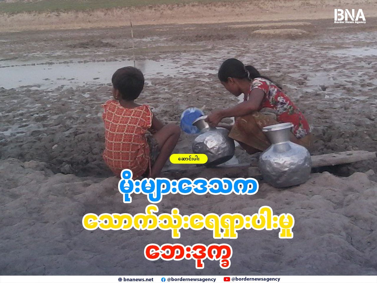 နွေရောက်ပြီဆိုတာနဲ့ရေရှားပါးမှုက စလာပြီ။ သောက်ရေသုံးရေကအစ ရေအရင်းအမြစ်တွေ တဖြည်းဖြည်းနည်းလာပါတော့တယ်။ တနှစ်လည်းမဟုတ် နှစ်နှစ်လည်းမဟုတ်တဲ့ဒီရေရှားပါးမှုပြဿနာက အာရက္ခဒေသက ပြည်သူတွေအတွက် ခေါင်းခဲစရာပါ။