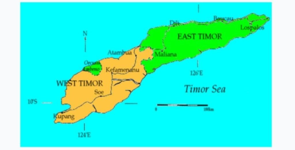 အနောက်တီမောနှင့် အရှေ့တီမောမြေပုံ