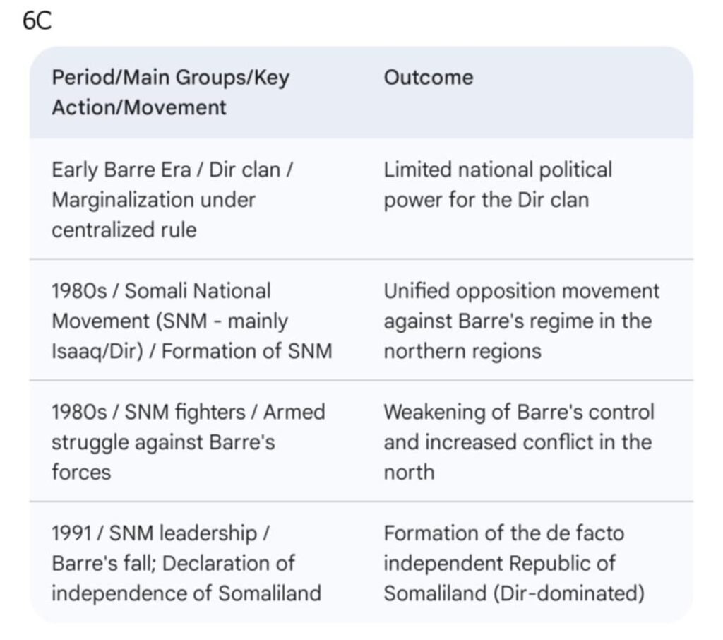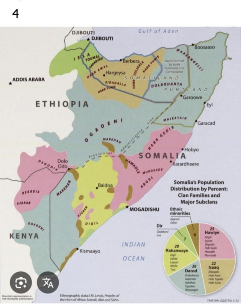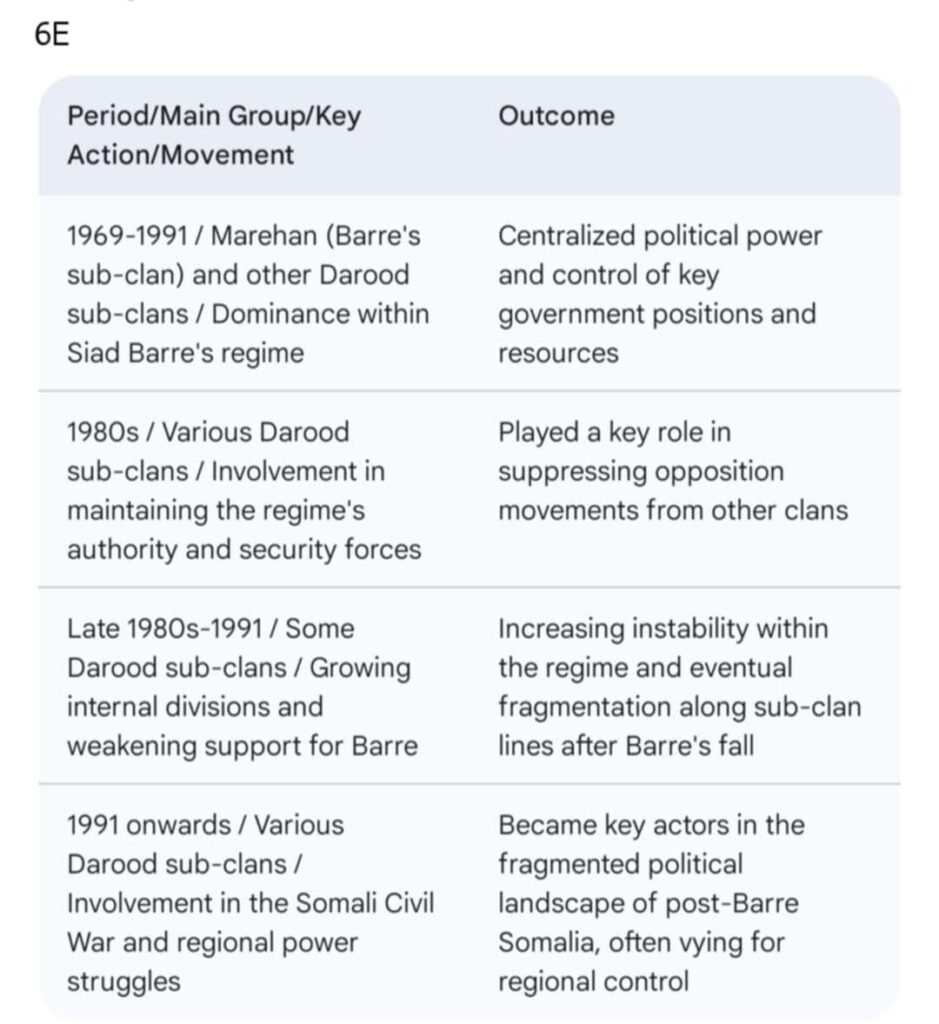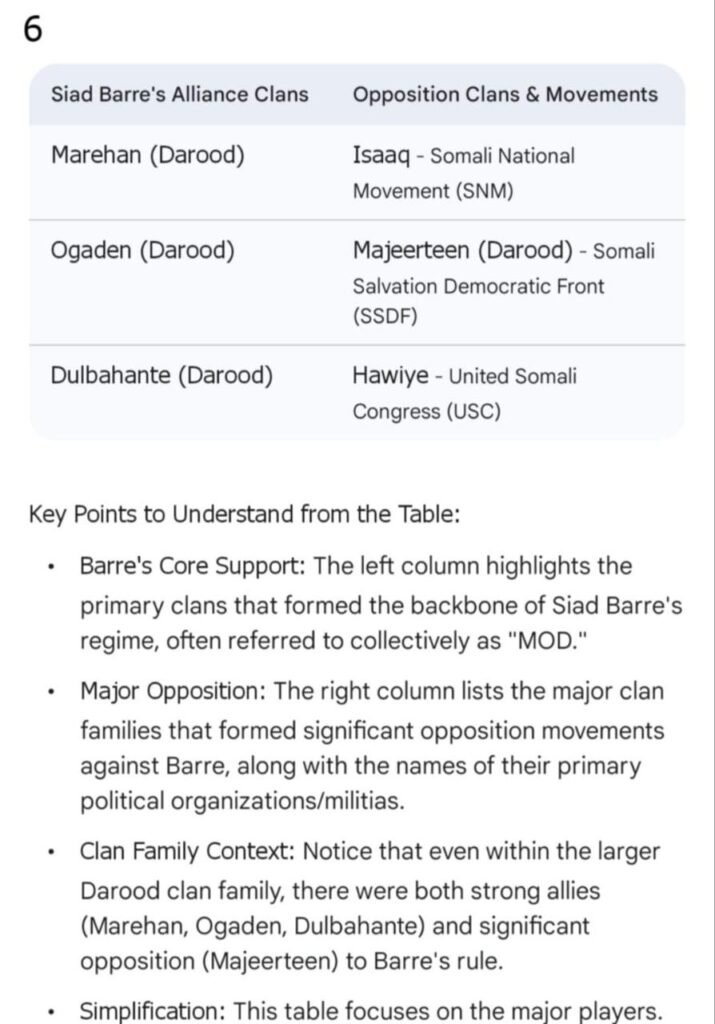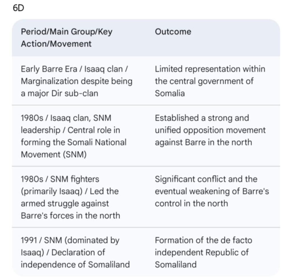 ထိုပင်မ ငါးစုထဲမှအုပ်စုခွဲများအသီး သီးရှိနေကြသည်။အာဏာရှင်ဆီယာဒ် ဘာရ်ရီ၏ ရက်စက်ကြမ်းကြုတ်စွာအုပ် ချုပ်မှုအပေါ်တန်ပြန်တွန်းလှန်ကြသော အီဆားတ်ဆွေမျိုးစု(Isaaq Clan)များ