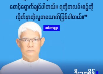 Read moreအင်တာဗျူးBorder News Agencyပလက်ဝ၊စက်တင်ဘာ ၁၇။ အာရက္ခတပ်တော်(AA)ထိန်းချုပ်ထားတဲ့ပလက်ဝမြို့နယ်မှာစစ်ဘေးရှောင်တွေဟာ ရာသီတုတ်ကွေးရောဂါဖြစ်လို့သေဆုံးတာတွေထိရှိနေကြပါတယ်။ အဲဒီအပြင်စားဝတ်နေရေး၊ ကျန်းမာရေးစောင့်ရှောက်မှုတွေလည်းလိုအပ်နေကြတယ်လို့ ဆိုကြပါတယ်။ အဲဒါကြောင့် Paletwa IDPs and Humanitarian Supporting အဖွဲ့မှတာဝန်ရှိသူဆလိုင်းဘွေရှိုင်းကို Border News Agency က...