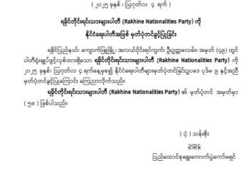 ရခိုင်တိုင်းရင်းသားများပါတီကို မှတ်ပုံ တင်ခွင့်ပြု