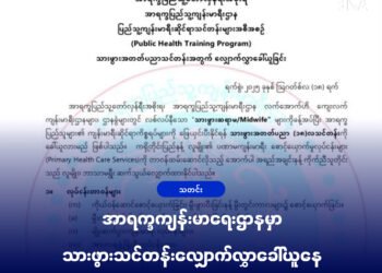 Read moreBorder News Agencyမြောက်ဦး၊ သြဂုတ် ၁၉။ အာရက္ခပြည်သူ့တော်လှန်ရေးအစိုးရရဲ့ အာရက္ခကျန်းမာရေးဌာနမှာ သားဖွားသင်တန်းအတွက်လျှောက်ထားနိုင်တယ်လို့ သြဂုတ်လ ၁၉ ရက်၊ ဒီနေ့ထုတ်ပြန်ပါတယ်။ အာရက္ခပြည်သူ့ကျန်းမာရေးဌာနလက် အောက်ခံကျေးလက်ကျန်းမာရေးဌာနတွေ၊ဌာနခွဲတွေမှာသားဖွားဆရာမတွေခန့်ပြီး အာရက္ခပြည်သူတွေရဲ့ကျန်းမာ ရေးကို ဖြေရှင်းဖို့ခေါ်ယူတာလို့ဆိုပါတယ်။ အဲဒီသားဖွားသင်တန်းကို တဆယ့်ရှစ်လကြာတက်ရမှာဖြစ်ပြီး ကျန်းမာရေးစောင့်ရှောက်မှုတာဝန်ထမ်းနိုင်တဲ့...