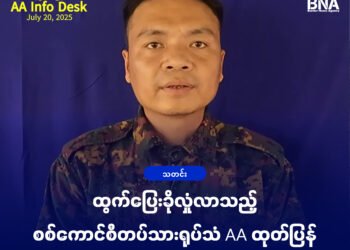Read moreBorder News Agencyမင်းပြား၊ ဇူလိုင် ၂၀။ စစ်ကောင်စီတပ်ထံ အတင်းအဓမ္မ စစ်သားစုဆောင်းခံခဲ့ရပြီးနောက် ထွက်ပြေးခိုလှုံလာသည့် တပ်သားနိုင်ဝင်းစိုး ပြောဆိုချက်ရုပ်သံကို အာရက္ခတပ်တော် (AA) က ဇူလိုင်လ ၂၀ ရက် ဒီနေ့ ထုတ်ပြန်ပါတယ်။ စစ်ကောင်စီတပ်သား...