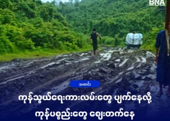 Read moreBorder News Agencyကျောက်တော်၊ ဇူလိုင် ၅။ အာရက္ခဒေသသို့ ကုန်ပစ္စည်းတွေတင်သွင်းနေတဲ့လမ်းတွေပျက်နေလို့ ကုန်ပ စ္စည်းတွေ စျေးတက်နေတယ်လို့ ပြည်သူတွေက ဆိုကြပါတယ်။ အဲဒီကားလမ်းတွေပျက်နေလို့ ကုန်တင်ကားတွေ ပိတ်မိနေပြီး ခရီးစာရိတ်ကုန်ကျတာတွေ ပိုများနေတာမို့ ကုန်ပစ္စည်းတွေ စျေးတက်နေတယ်လို့ ကုန်သည်တွေက...