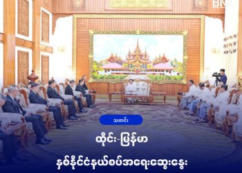 Read moreBorder News Agencyနေပြည်တော်၊ ဒီဇင်ဘာ ၈။ ထိုင်း-မြန်မာ နှစ်နိုင်ငံနယ်စပ်ဒေသတည်ငြိမ်ရေးကိစွတွေကို ဆွေးနွေးခဲ့ကြတယ်လို့ စစ်ကော်မရှင်တပ်က ဒီဇင်ဘာလ ၇ ရက်၊ မနေ့ကထုတ်ပြန်ပါတယ်။ အာဏာသိမ်းစစ်ခေါင်းဆောင် မင်းအောင်လှိုင်နဲ့ ထိုင်းနိုင်ငံ၊နိုင်ငံခြားရေးဝန်ကြီး H.E.Mr.Sihasakm Phuangketkeow ဟာ ဒီဇင်ဘာလ...