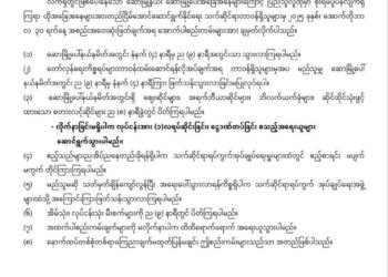 Border News Agencyဆော၊ အောက်တိုဘာ ၃၁။ မကွေးတိုင်း၊ ဂန့်ဂေါခရိုင်၊ ဆောမြို့နယ်မှာနံနက်လေးနာရီမှ ညကိုးနာရီအတွင်းသာသွားလာကြဖို့ အောက်တိုဘာ ၃၁ရက်၊ ဒီနေ့ ဆောမြို့နယ်ပြည်သူ့အုပ်ချုက်ရေးအဖွဲ့ ထုတ်ပြန်ပါတယ်။ အဲဒီအရပ်သားပြည်သူတွေ လိုက်နာရမယ့်စည်းကမ်းရှစ်ချက်ကို ထုတ်ပြန်လိုက်တာဖြစ်ပြီး ဆောမြို့နယ်ရှိပြည်သူလူထုတည်ငြိမ်အေးချမ်းအောင် ဆောင်ရွက်နိုင်ဖို့အတွက်လို့ ဆိုပါတယ်။...