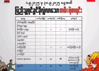 Read moreBorder News Agencyနေပြည်တော်၊ အောက်တိုဘာ ၂။ စက်တင်ဘာလအတွင်း စစ်ကော်မရှင်တပ်က ဗိုလ်ကြီးတဦးအပါအဝင် စုစုပေါင်းခြောက်ဆယ်ရှစ်ဦးဟာ ပြည်သူ့ရင်ခွင်(Peoples Embrace)ခိုလှုံခဲ့ကြောင်း အမျိုးသားညီညွတ်ရေးအစိုး ရ(NUG)ကာကွယ်ရေးဝန်ကြီးဌာနက အောက်တိုဘာလ ၂ရက်၊ ဒီနေ့မှာ ထုတ်ပြန်ခဲ့ပါတယ်။ အဲဒီအထဲမှာလက်နက်နဲ့အတူဝင်ရောက်သူဆယ့်ရှစ်ဦးပါဝင်ပြီးလက်နက် MA-1ဆယ့်တလက်၊ MA-3...