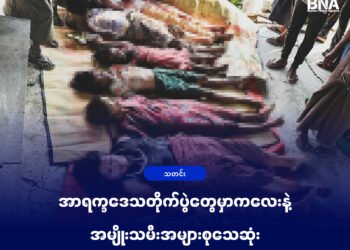 Read moreBorder News Agencyပုဏ္ဏားကျွန်း၊ မတ် ၁၅။ အာရက္ခဒေသအတွင်း ဖြစ်ပွားနေတဲ့ တိုက်ပွဲတွေမှာ လေကြောင်းတိုက်ခိုက်ခံရတာနဲ့လက်နက်ကြီး ပစ်ခတ်မှုတွေကြောင့် သေဆုံးရသူတွေထဲမှာကလေးငယ်တွေနဲ့ အမျိုးသမီးတွေက ၅၇ ရာခိုင်နှုန်းအထိ ပါဝင်နေတယ်လို့ Data for Myanmar အဖွဲ့ရဲ့အစီရင်ခံစာအရ သိရပါတယ်။...
