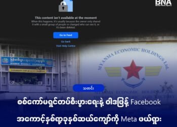 Read moreBorder News Agencyနေပြည်တော်၊ ဇန်နဝါရီ ၂၇ ။ စစ်ကော်မရှင်တပ်နဲ့ဆက်စပ်နေတဲ့ စီးပွားရေးလုပ်ငန်းတွေ ဝါဒဖြန့်စာမျက်နှာတွေနဲ့ အကောင့်ပေါင်းနှစ်ရာ့ခုနှစ်ဆယ်ခုကို Facebook ရဲ့ မိခင်ကုမ္ပဏီ Meta က ဖယ်ရှားလိုက်ပါတယ်။ အဲဒီစစ်တပ်ပိုင် မိုင်တဲလ် (Mytel)၊ MECtel၊...