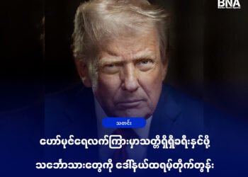 Read moreBorder News Agencyဝါရှင်တန်၊ မတ် ၁၃။ အီရန်နဲ့စစ်ရေးတင်းမာမှုတွေကြောင့် ရေနံဈေးနှုန်းတွေထိုးတက်နေပေမယ့် ဟော်မုဇ်ရေလက်ကြားကိုဖြတ်သန်းမယ့် ရေနံတင်သင်္ဘောသားတွေအနေနဲ့ "သတ္တိရှိရှိ"မောင်းနှင်ကြဖို့ သမ္မတဒေါ်နယ်ထရမ့်က တိုက်တွန်းလိုက်ပါတယ်။ "ဒီသင်္ဘောတွေက ဟော်မုဇ်ရေလက်ကြားကို ဖြတ်မောင်းပြီးသူတို့ရဲ့သတ္တိကို ပြသင့်တယ်။ ဘာမှကြောက်နေစရာမလိုဘူး။ အီရန်မှာရေတပ်မရှိတော့ဘူး၊ ကျွန်တော်တို့ သူတို့သင်္ဘောတွေကို...