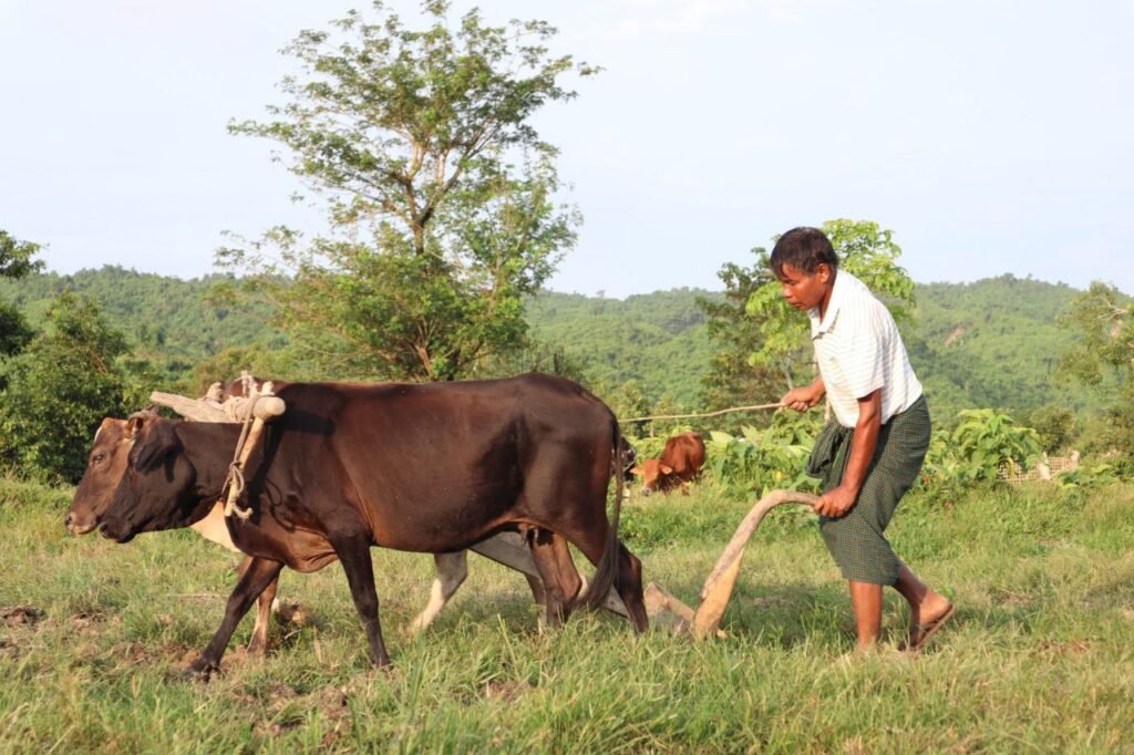(ဓာတ်ပုံ – မယူတောင်ခြေအနီးမှာတောင်သူတဦးဆောင်းသီးနှံစိုက်ပျိုးဖို့ထွန်ယက်နေပုံ / BNA)