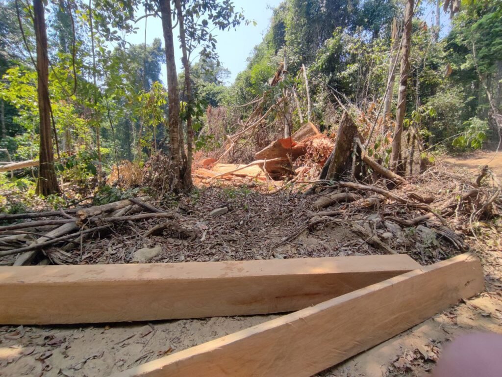 (ဓာတ်ပုံ – ဂွမြို့နယ်အပိုင်ရိုမတောင်တနေရာမှာမတရားမဝင်သစ်ခိုးထုတ်နေမှုကို ၂၀၂၃ ခုနှစ်က တွေ့ရပုံ / BNA)
