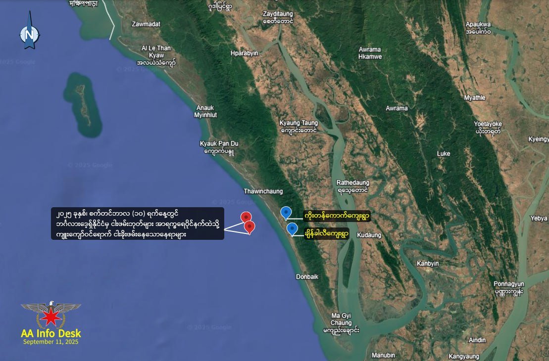အာရက္ခရေပိုင်နက်မှာ ခိုးဝင်ငါးဖမ်းနေတဲ့ဘင်္ဂလားဒေ့ရှ်အခြေစိုက် အကြမ်းဖ က်သမားတွေဟာ အာရက္ခတပ်တော်(AA)လုံခြုံရေးအရာရှိတဦးနဲ့ ကမ်းခြေစောင့်တပ်ဖွဲ့ဝင်တဦးကိုသတ်ဖြတ်လက်နက်တွေလုယူပြီးဘင်္ဂလားဒေ့ရှ်နိုင်ငံ ရေပိုင်နက်ထဲသို့ ထွက်ပြေးသွားခဲ့ကြခဲ့တယ်လို့ အာရက္ခတပ်တော်(AA)က စ က်တင်ဘာလ ၁၁ ရက်၊ ဒီနေ့ထုတ်ပြန်ပါတယ်။