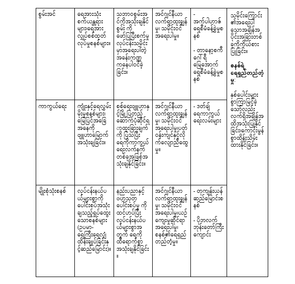 ထိုအပြင်ဇယားကွက်အပိုင်း(ခ)သည် ဤစာတမ်းဘာသာပြန်သူစုဆောင်း ဖော်ပြထားခြင်းဖြစ်သည်။