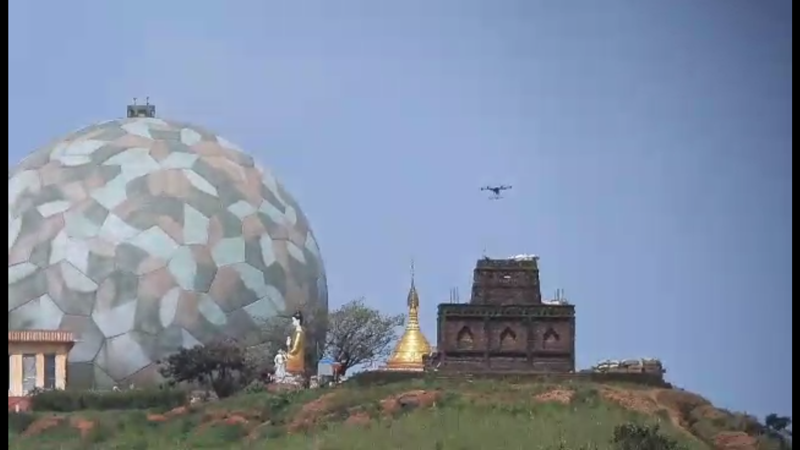 (ဓာတ်ပုံ - အာရက္ခတပ်တော်သိမ်းပိုက်ထားတဲ့နတ်ရေကန်ဗျူဟာကုန်းကြီးမှကမ္ဘာ့လုံးအထိုင်ကာကင်းစခန်းကြီး / AA)