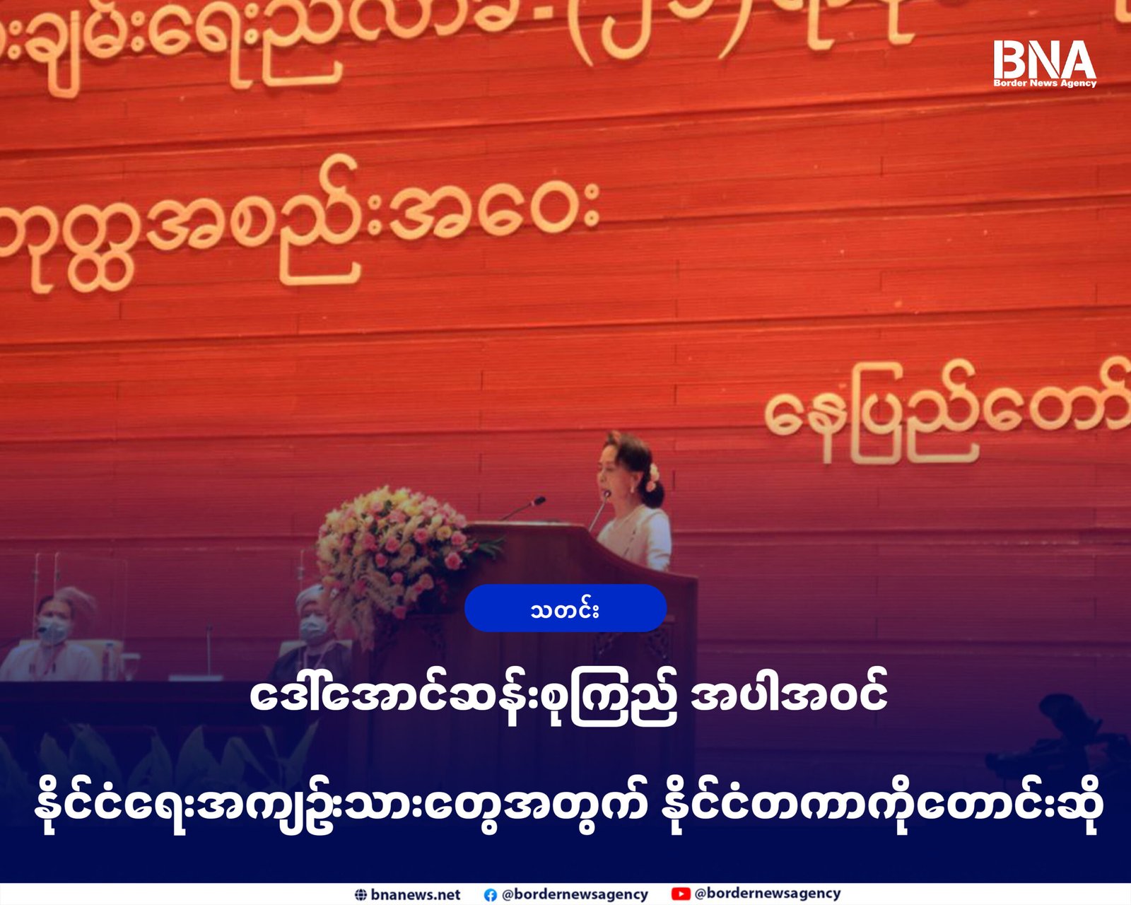 အမျိုးသားဒီမိုကရေစီအဖွဲ့ချုပ်(NLD)အစိုးရရဲ့ နိုင်ငံတော်အတိုင်ပင်ခံပုဂ္ဂိုလ် ကိုယ်ဒေါ်အောင်ဆန်းစုကြည်၊ နိုင်ငံတော်သမ္မတဦးဝင်းမြင့်အပါအဝင် လွှတ်တော်ကိုယ်စားလှယ်တွေ၊ နိုင်ငံရေးအကျဉ်းသားအားလုံးအတွက် နိုင်ငံတကာကို အမျိုးသားညီညွတ်ရေးအစိုးရ(NUG)တောင်းဆိုလိုက်ပါတယ်။