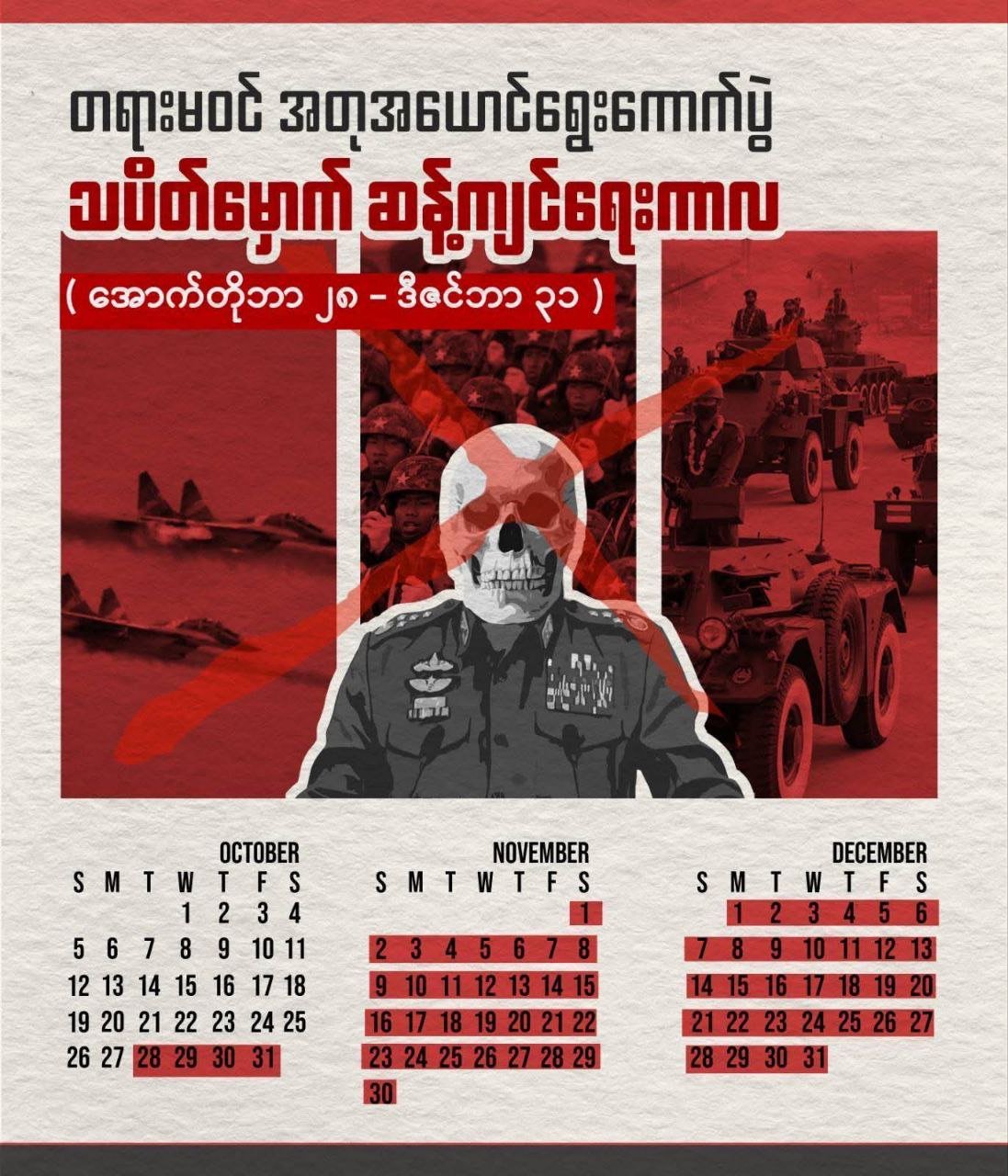 စစ်ကော်မရှင်ရဲ့တရားမဝင်အတုအယောင်ရွေးကောက်ပွဲကို လူထုစုပေါင်းအားနဲ့ သပိတ်မှောက်ဆန့်ကျင်ရေးလှုပ်ရှားမှု တော်လှန်ရေးအင်အားစုတွေ ပြုလုပ်နေကြပါတယ်။
