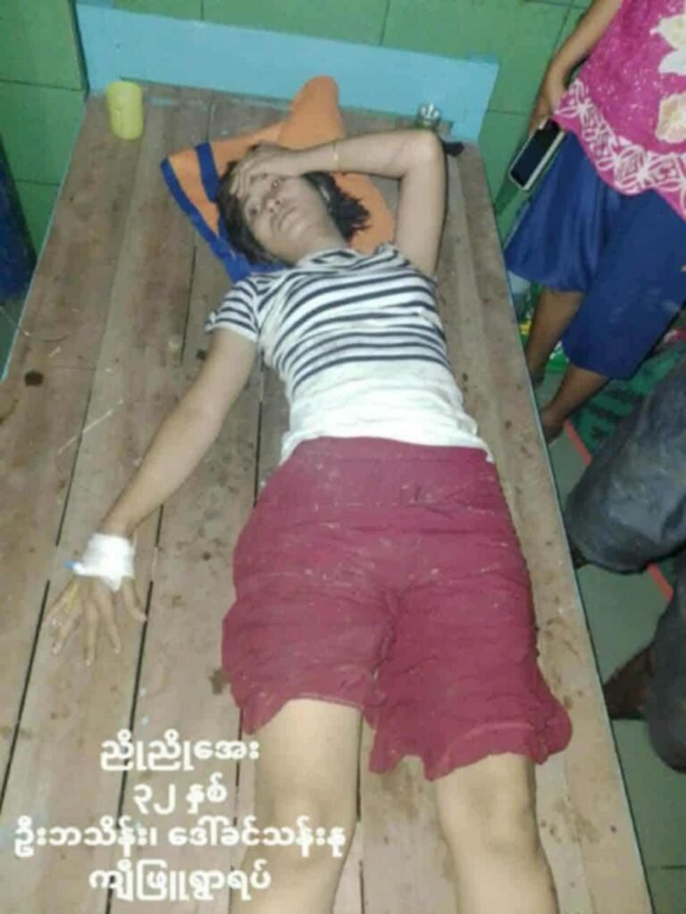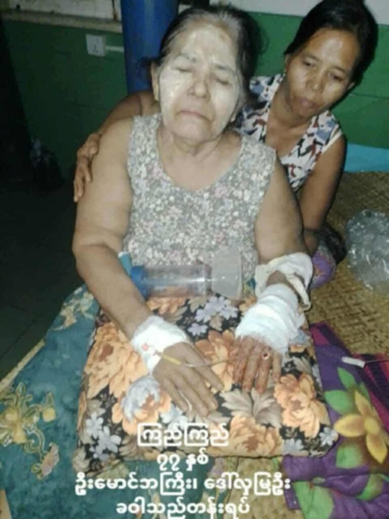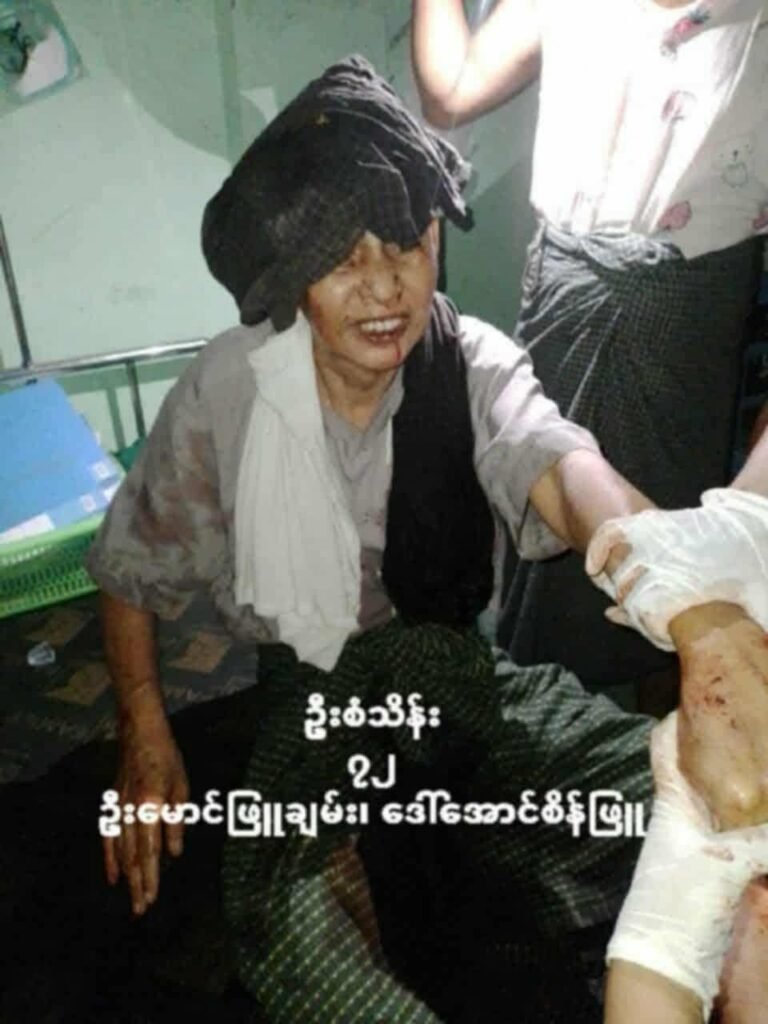 အဲဒီပုဏ္ဏားကျွန်းမြို့နယ်၊အောင်ဖြူပြင်ကျေးရွာကိုလည်း နိုဝင်ဘာလ ၇ ရက် မနေ့ကနေ့လည်၁၁ နာရီ ၂၀ မိနစ်အချိ န်မှာ စစ်ကော်မရှင်တပ်ဗုံးကြဲတိုက်ခိုက်လို့ ဒေါ်လှရွှေနုဗုံးစထိမှန်ပြီးညာဖက်ပေါင်ဒဏ်ရာရသွားပါတယ်။