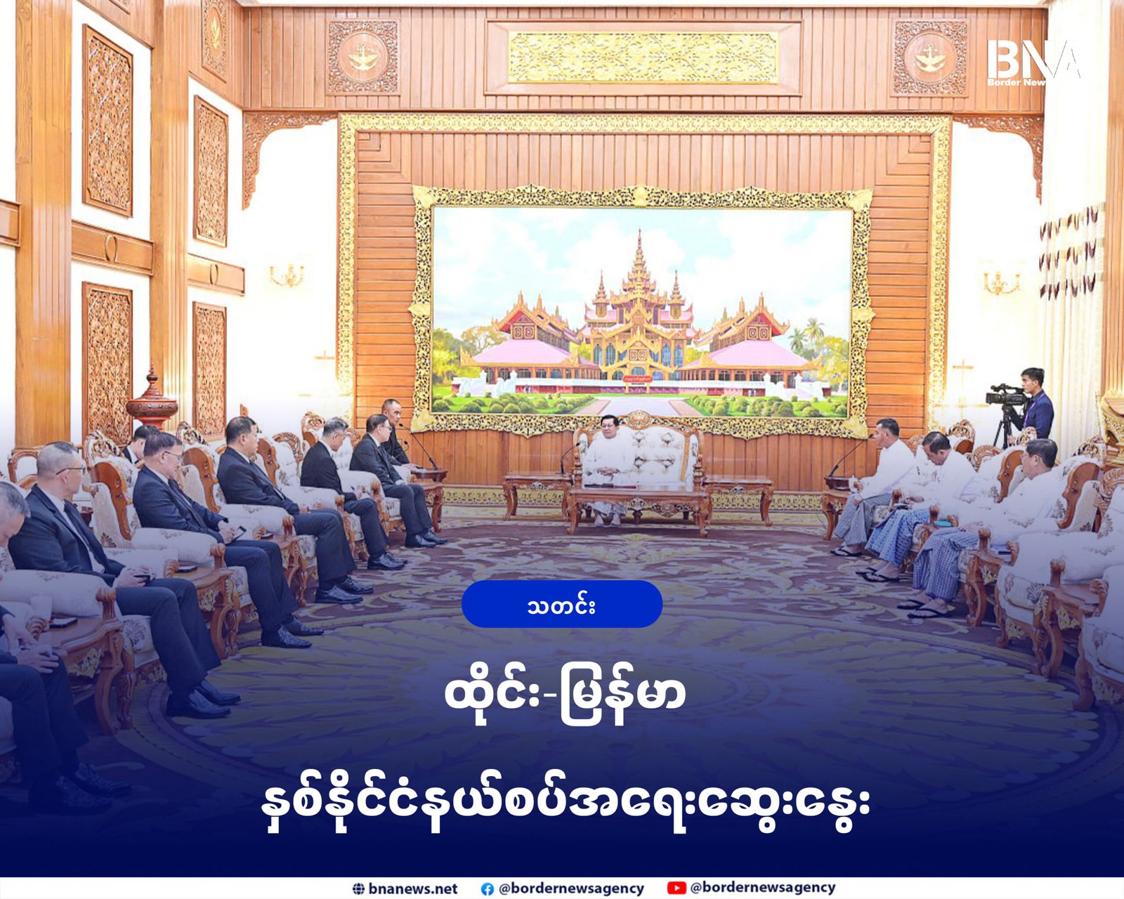 အဲဒီအပြင်နယ်စပ်ဒေသတရားမဝင်ကုန်သွယ်မှုတွေမရှိဖို့ ထိန်းသိမ်းဆောင်ရွက်ဖို့၊ နှစ်နိုင်ငံနယ်စပ်ဒေသမှာရှိတဲ့ အွန်လိုင်းလိမ်လည်လောင်းကစားတွေကိုလုပ်နေတဲ့ KK Park နဲ့ ရွှေကုက္ကိုလ်ရှိအ ဆောက်အဦးတွေကိုဖျက်ဆီးနေတဲ့ အခြေအနေ၊ နှစ်နိုင်ငံနယ်စပ်ဒေသမှာ လက်နက်ခဲယမ်းတွေတရားမဝင်ရောင်းချတာတွေကို ပူးပေါင်းထိန်းသိမ်းဆောင်ရွက်မယ့်ကိစွတွေကို ဆွေးနွေးခဲ့ကြတယ်လို့ ဆိုပါတယ်။