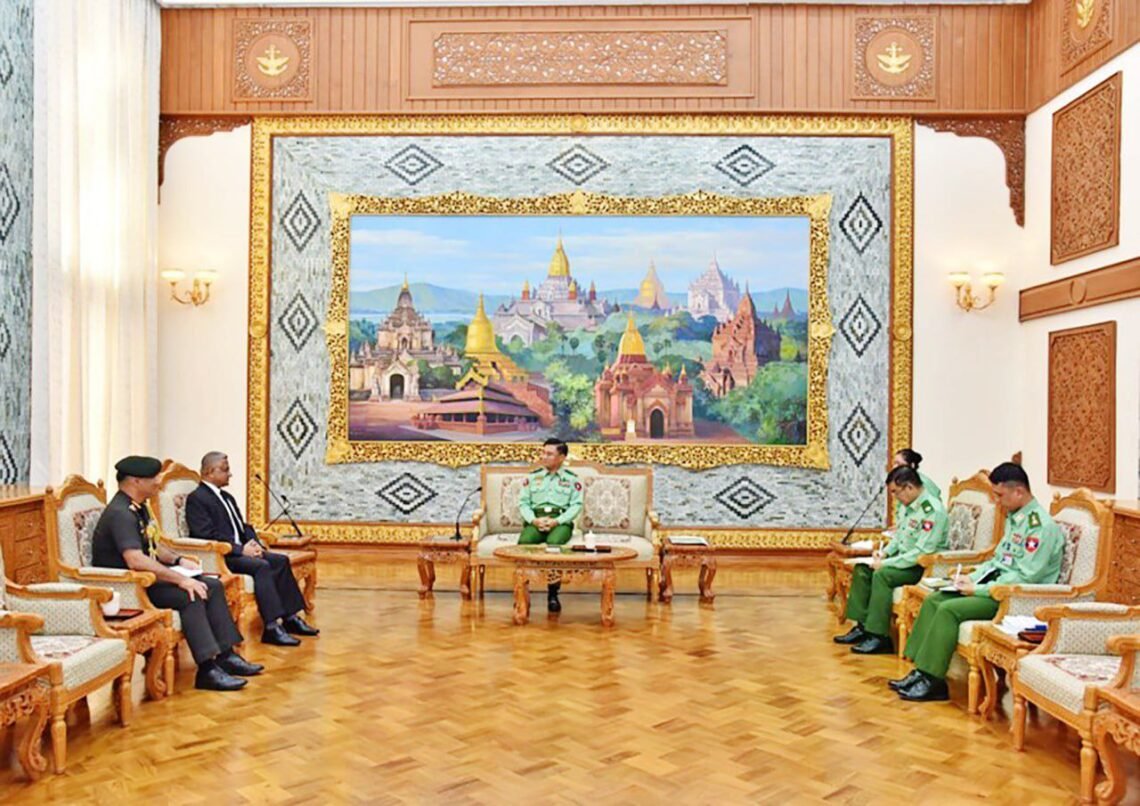 စစ်ကော်မရှင်ရဲ့ နိုင်ငံတော်လုံခြုံရေးနဲ့ အေးချမ်းသာယာရေးကော်မရှင်အဖွဲ့ဝင် ညှိနှိုင်းကွပ်ကဲရေးမှူး (ကြည်း၊ ရေ၊ လေ) ဗိုလ်ချုပ်ကြီးကျော်စွာလင်းဟာ မြန်မာနိုင်ငံဆိုင်ရာ အိန္ဒိယသံအမတ်ကြီး H.E.Mr. Abhay Thakur နဲ့ မနေ့က နေပြည်တော်မှာတွေ့ဆုံခဲ့တာပါ။