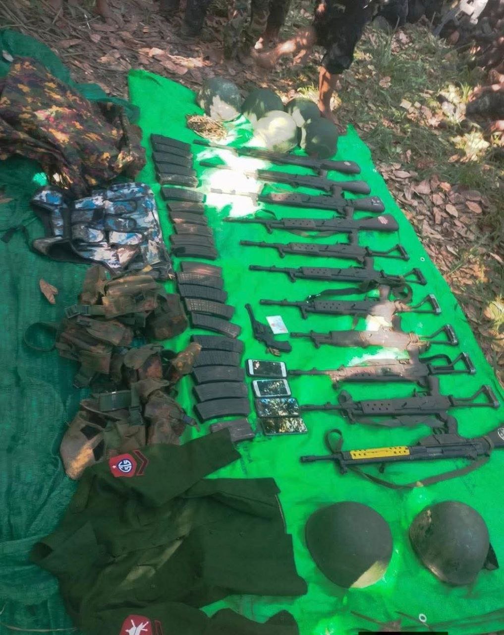 အဲဒီတိုက်ပွဲအတွင်းက MA1- လေးလက်၊ MA3 – ခြောက်လက်၊ G3 – တလက်၊ ခြောက်လုံးပြူ – တလက်၊ G3 ကျည်ဘောက်တခု၊ MA ကျည်ဘောက် နှစ်ဆယ့်တခု၊ အတိုကျည်ငါးတောင့်၊ ဦးထုပ်ခုနှစ်လုံး၊ 5.56 ကျည် နှစ်ရာ့တဆယ့်ကိုးတောင့်၊ အီကွေးမန့်သုံးခု၊ Vest တခုနဲ့ Mobile Phone လေးလုံး သိမ်းဆည်းရမိခဲ့တယ်လို့ဆိုပါတယ်။