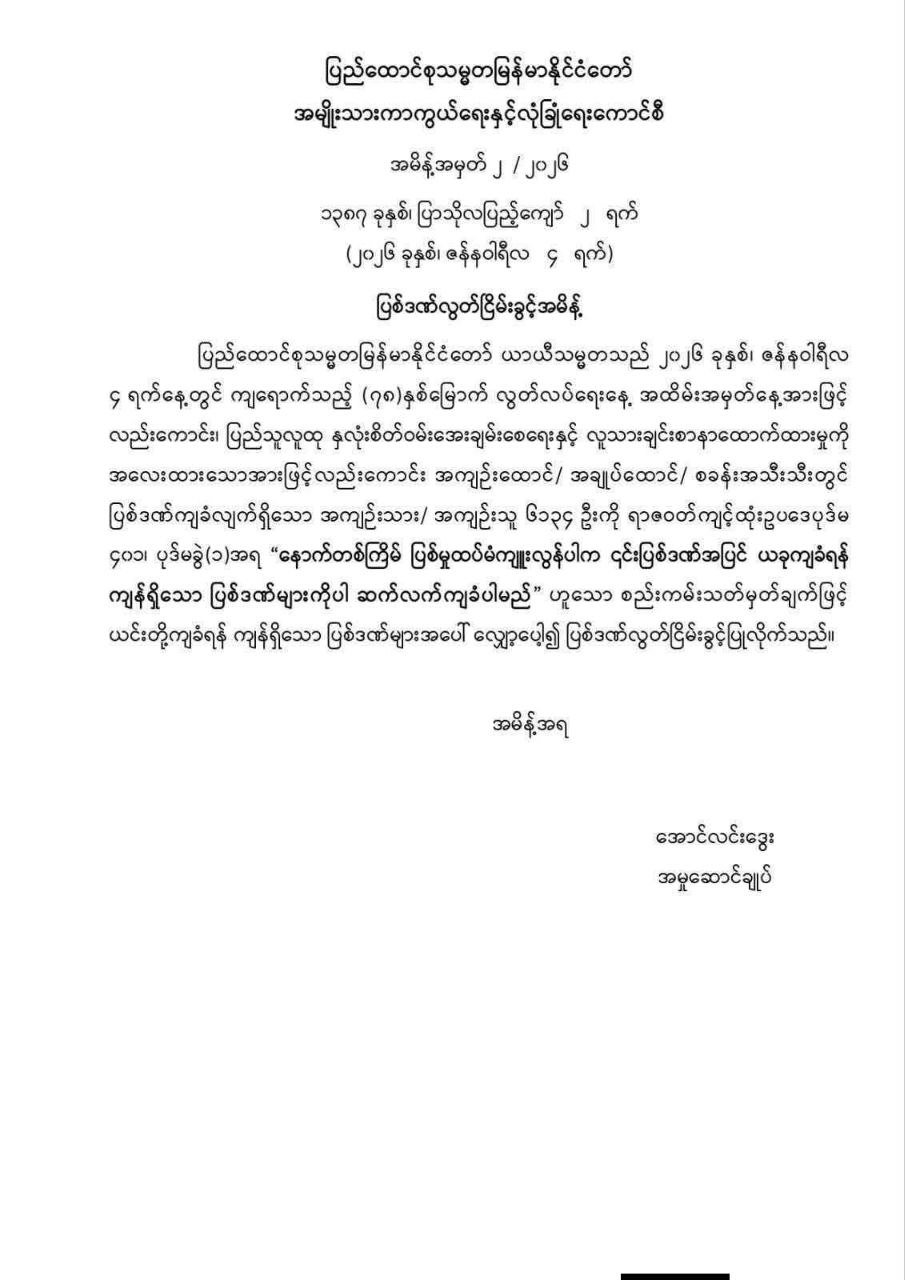 ပြည်သူလူထု နှလုံးစိတ်ဝမ်းအေးချမ်းစေရေးနဲ့ လူသားချင်းစာနာထောက်ထားမှုကို အလေးထားတာကြောင့် အကျဉ်းထောင်တွေမှ အကျဉ်းသား ခြောက်ထောင့်တရာ့သုံးဆယ်လေးဦးကို လွတ်ငြိမ်းခွင့်ပေးခဲ့တာလို့ စစ်ခေါင်းဆောင်ကဆိုပါတယ်။
