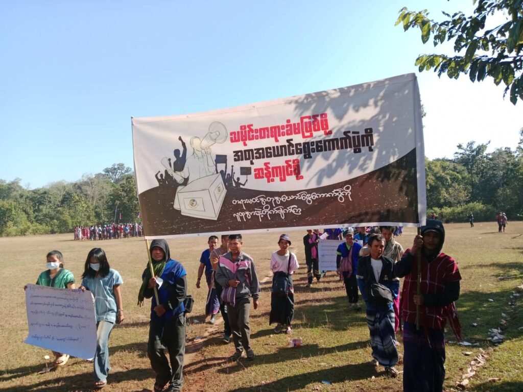 ​စစ်အာဏာရှင်စနစ်နဲ့ အတုအယောင်ရွေးကောက်ပွဲကို အလိုမရှိကြောင်း၊ ကော်သူးလေအစိုးရ တည်ဆောက်ရေးနဲ့ လူမျိုးပေါင်းစုံ စည်းလုံးညီညွတ်ရေးအတွက် ပြည်သူလူထုက ပြတ်ပြတ်သားသား ဆန္ဒထုတ်ဖော်ခဲ့ကြပါတယ်။