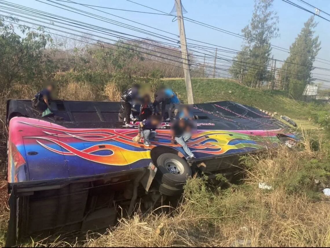 အဲဒီအချိန် လမ်းပေါ်ကဖြတ်မောင်းလာတဲ့ မြန်မာအလုပ်သမား ကြိုပို့ယာဉ်ပေါ်ကို တည့်တည့်ပိမိပြီး ကားတိမ်းမှောက်မှု ဖြစ်ပွားခဲ့တာပါ။