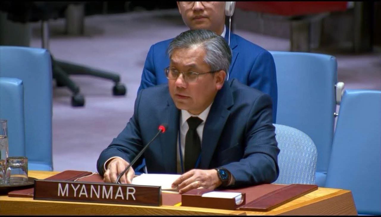 စစ်ကော်မရှင်တပ်ရဲရွေးကောက်ပွဲကို နိုင်ငံတကာအနေနဲ့ ငြင်းပယ်ကန့်ကွက်ကြဖို့၊စစ်ခေါင်းဆောင်ကိုဖမ်းဝရမ်းထုတ်နိုင်ရေးအရှိန်မြှင့်ဆောင်ရွက်ဖို့ကို ကုလသမဂ္ဂဆိုင်ရာမြန်မာသံအမတ်ကြီး ဦးကျော်မိုးထွန်းက ကုလသမဂ္ဂလုံခြုံရေးကောင်စီတွင် တိုက်တွန်းပြောကြားလိုက်ပါတယ်။