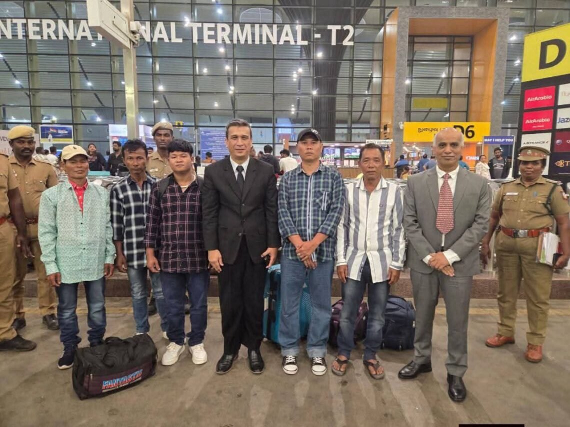 အခုပြန်လည်ရောက်ရှိလာတဲ့ ရေလုပ်သားတွေဟာ Trichy မြို့နဲ့ ချန်နိုင်းမြို့တွေမှာရှိတဲ့ နိုင်ငံခြားသားမှတ်ပုံတင်ရေးရုံးတွေနဲ့ အိန္ဒိယပြည်ပရေးရာဝန်ကြီးဌာနတို့ရဲ့ လုပ်ထုံးလုပ်နည်းတွေအတိုင်း ဆောင်ရွက်ပြီးမှ ပြန်လည်ထွက်ခွာခွင့်ရရှိခဲ့တာဖြစ်တယ်လို့လည်း ဆိုပါတယ်။