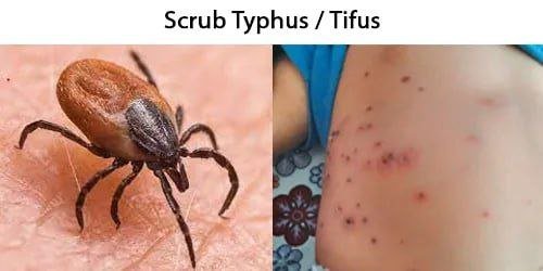 ​ဒီရောဂါဟာ ပြင်းထန်စွာဖျားတာ၊ ခေါင်းကိုက်တာနဲ့ အကိုက်ခံရတဲ့နေရာမှာ ဆေးလိပ်မီးနဲ့ထိုးထားသလို ညိုမည်းတဲ့အနာကွက် (Eschar) ဖြစ်ပေါ်တတ်တာပါ။