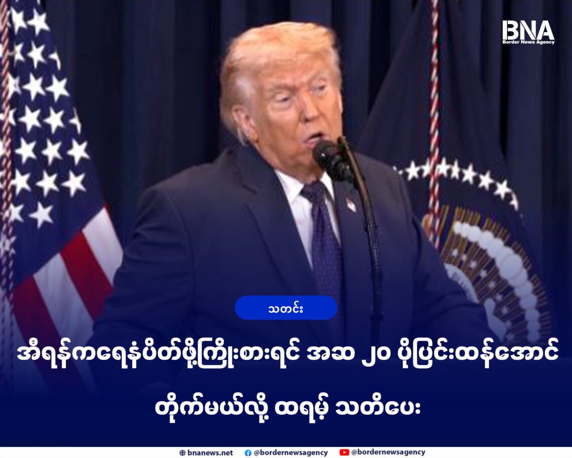 အမေရိကန်နဲ့ အစ္စရေးတို့ရဲ့ တိုက်ခိုက်မှုတွေမရပ်မချင်း အရှေ့အလယ်ပိုင်းဒေသက ဘယ်ရေနံကိုမှအပြင်ပေးမထွက်ဘူးလို့ အီရန်တော်လှန်ရေးအစောင့်တပ်ဖွဲ့ (IRGC) ဘက်က ပြောဆိုလာတဲ့အပေါ် ထရမ့်က အခုလို ပြင်းပြင်းထန်ထန် တုံ့ပြန်ခဲ့တာပါ။