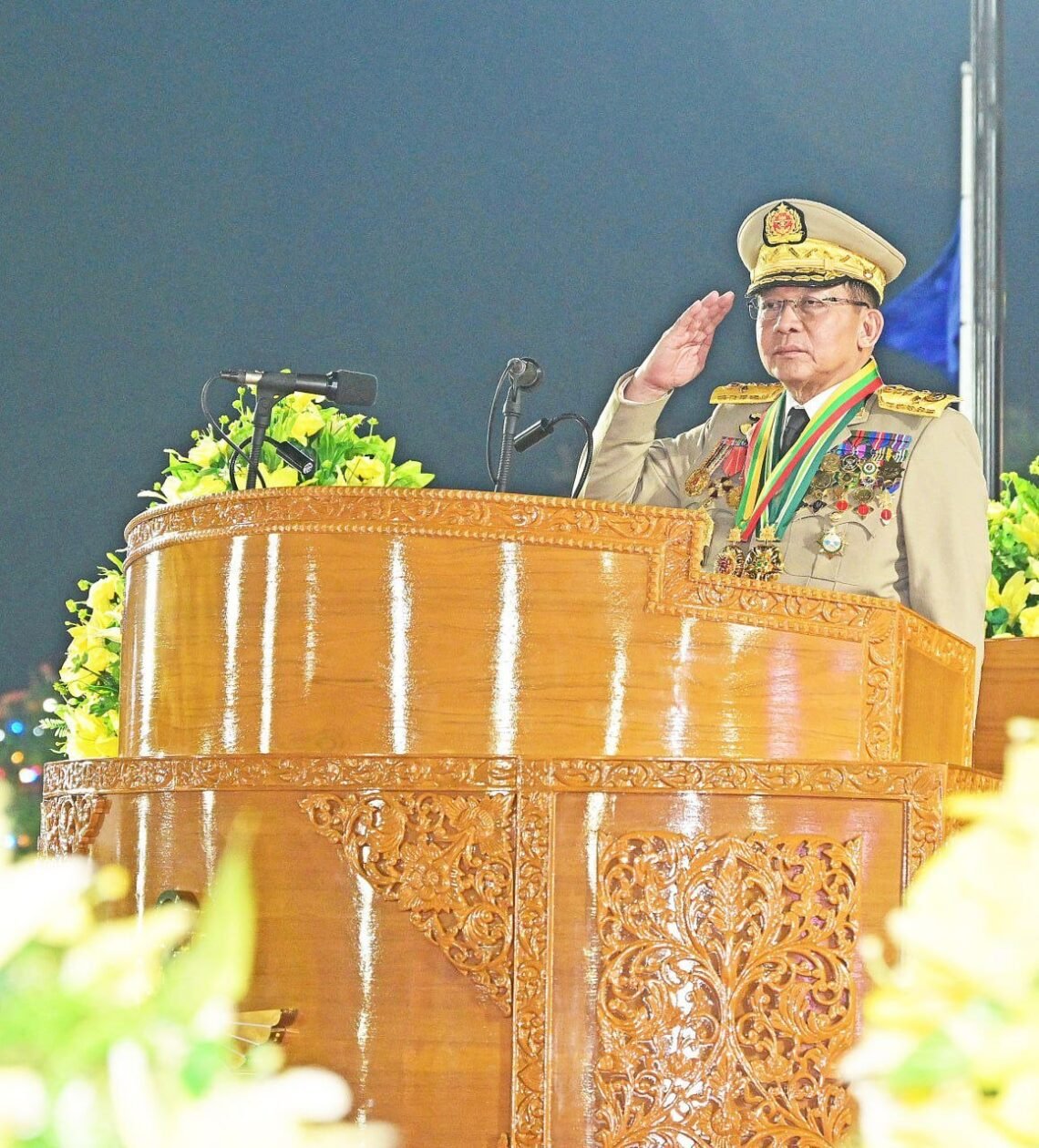 နေပြည်တော်မှာမတ်လ ၂၇ ရက်၊မနေ့က ကျင်းပတဲ့ ၈၁ နှစ်မြောက် တပ်မတော်နေ့ အခမ်းအနားမိန့်ခွန်းမှာ ပြောတာပါ။