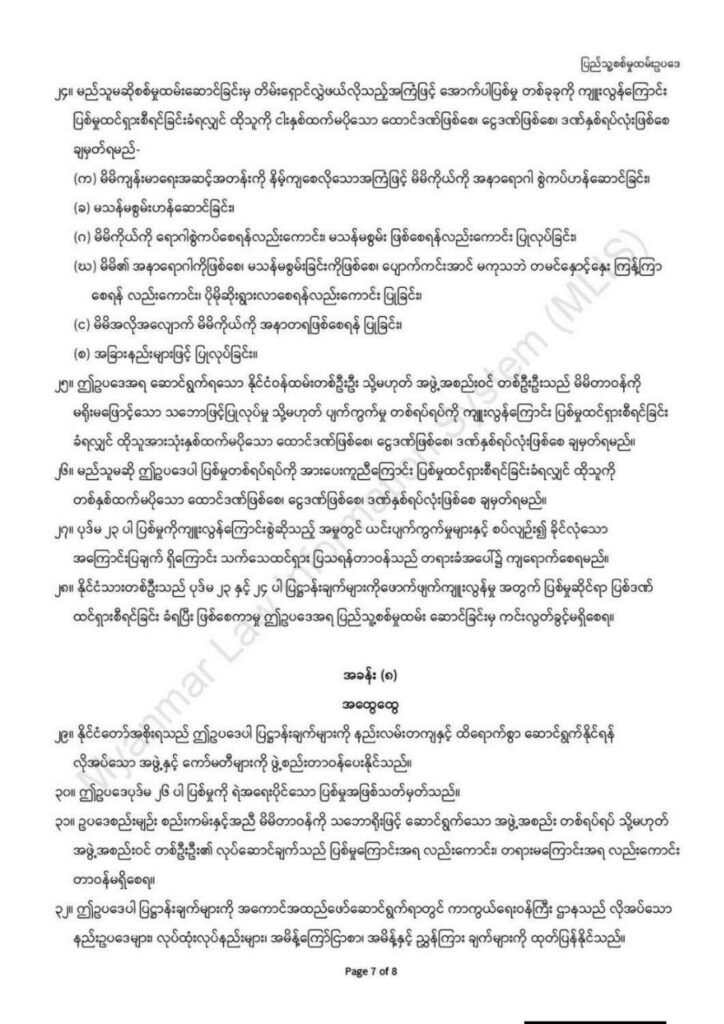 ဒါ့အပြင် ဥပဒေဟောင်းမှာပါတဲ့ ရပ်ကွက်/ကျေးရွာ အေးချမ်းသာယာရေးနဲ့ ဖွံ့ဖြိုးရေးကောင်စီဆိုတဲ့ အသုံးအနှုန်းကိုလည်း သက်ဆိုင်ရာ ရပ်ကွက် သို့မဟုတ် ကျေးရွာအုပ်စု အုပ်ချုပ်ရေးမှူးဆိုတဲ့ စကားရပ်နဲ့ အစားထိုး ပြောင်းလဲလိုက်ပါတယ်။
