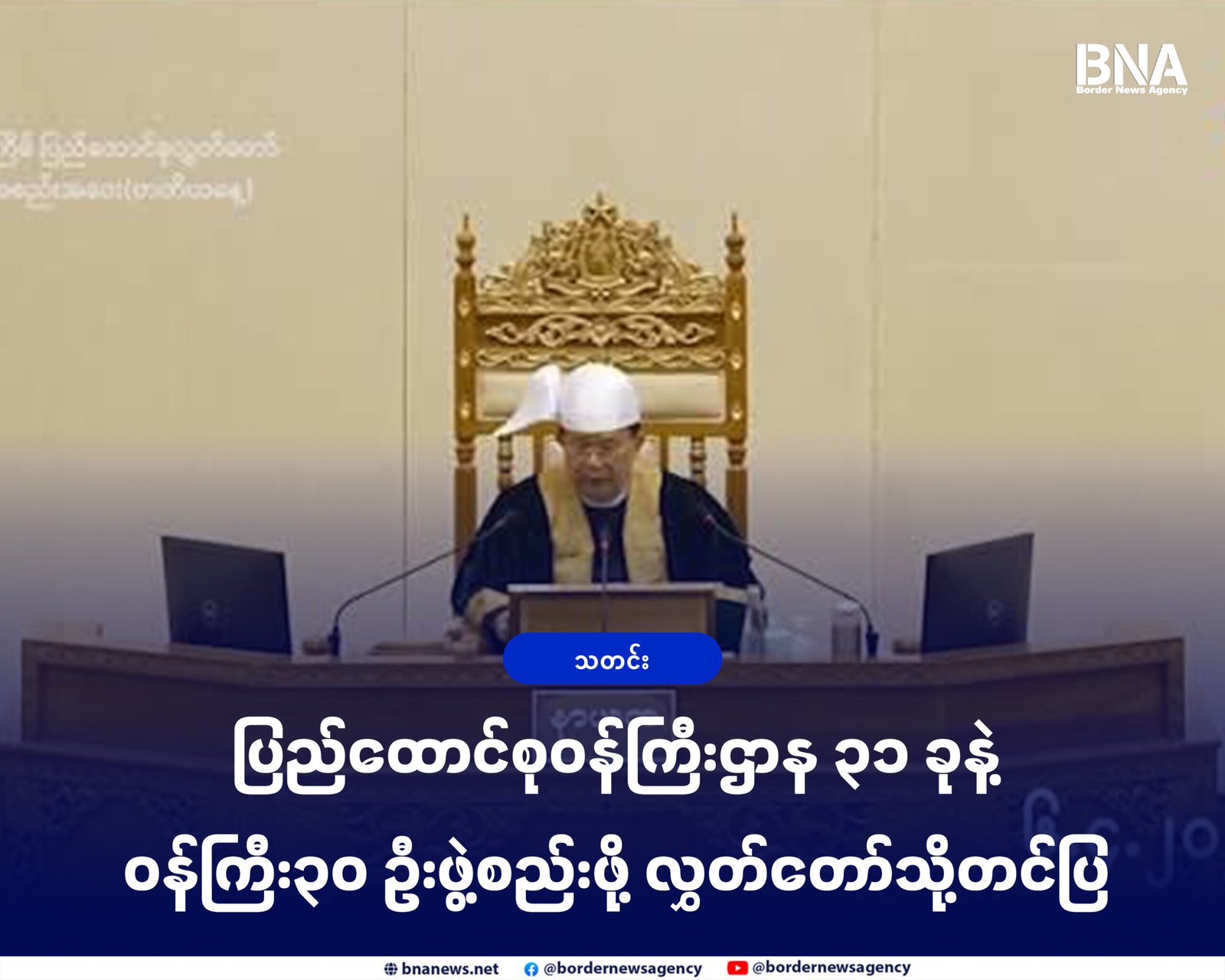 ​ပြည်ထောင်စုဝန်ကြီးဌာန ၃၁ ခုနဲ့ဝန်ကြီး၃၀ ဦးဖွဲ့စည်းဖို့လွှတ်တော်သို့တင်ပြ