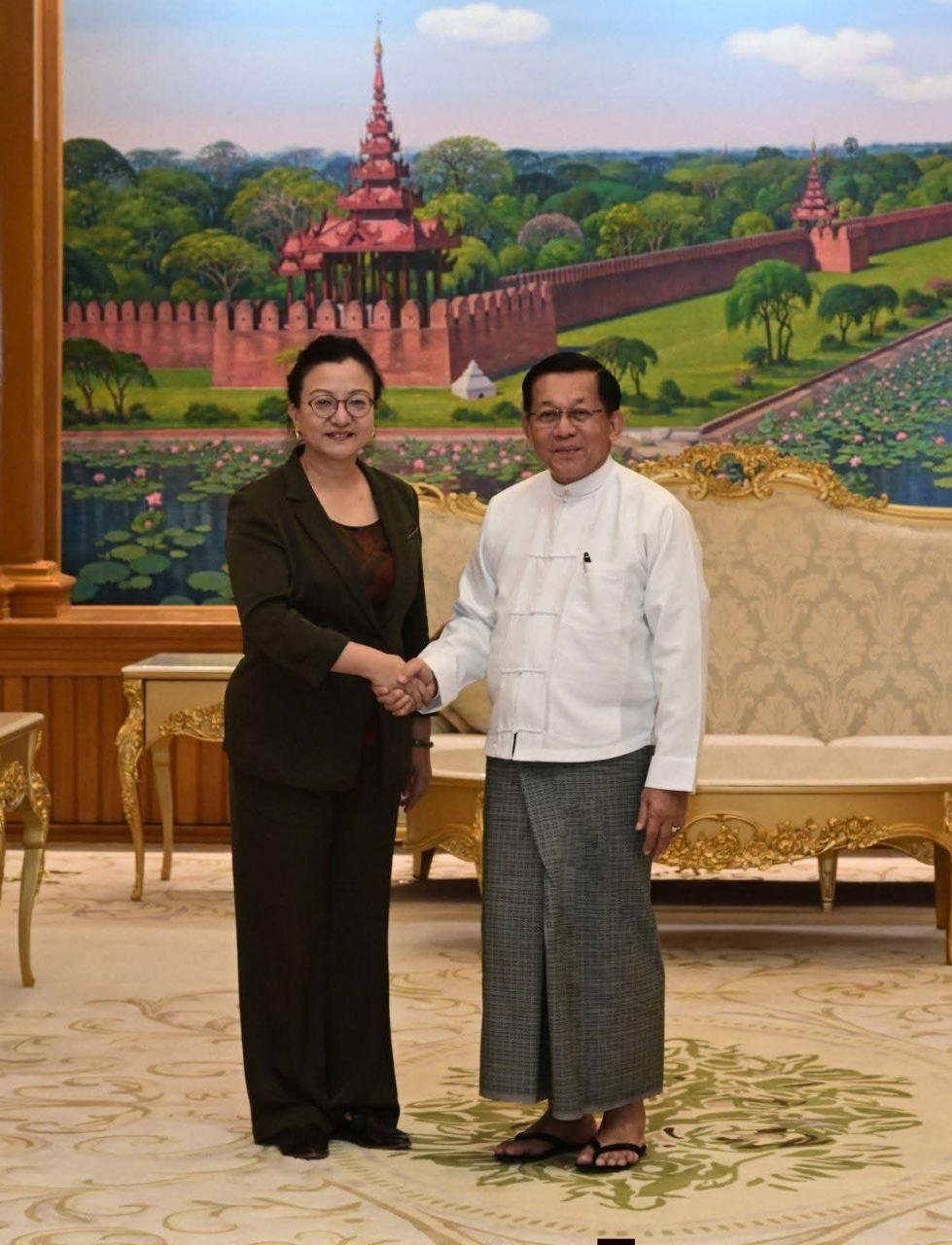 စစ်ခေါင်းဆောင် မင်းအောင်လှိုင်နဲ့ မြန်မာနိုင်ငံဆိုင်ရာ တရုတ်သံအမတ်ကြီး Ms. Ma Jia တို့ဟာ ဧပြီလ ၆ ရက်၊မနေ့ကနေပြည်တော်မှာတွေ့ဆုံခဲ့တယ်လို့ စစ်ကော်မရှင်တပ်က ထုတ်ပြန်ပါတယ်။