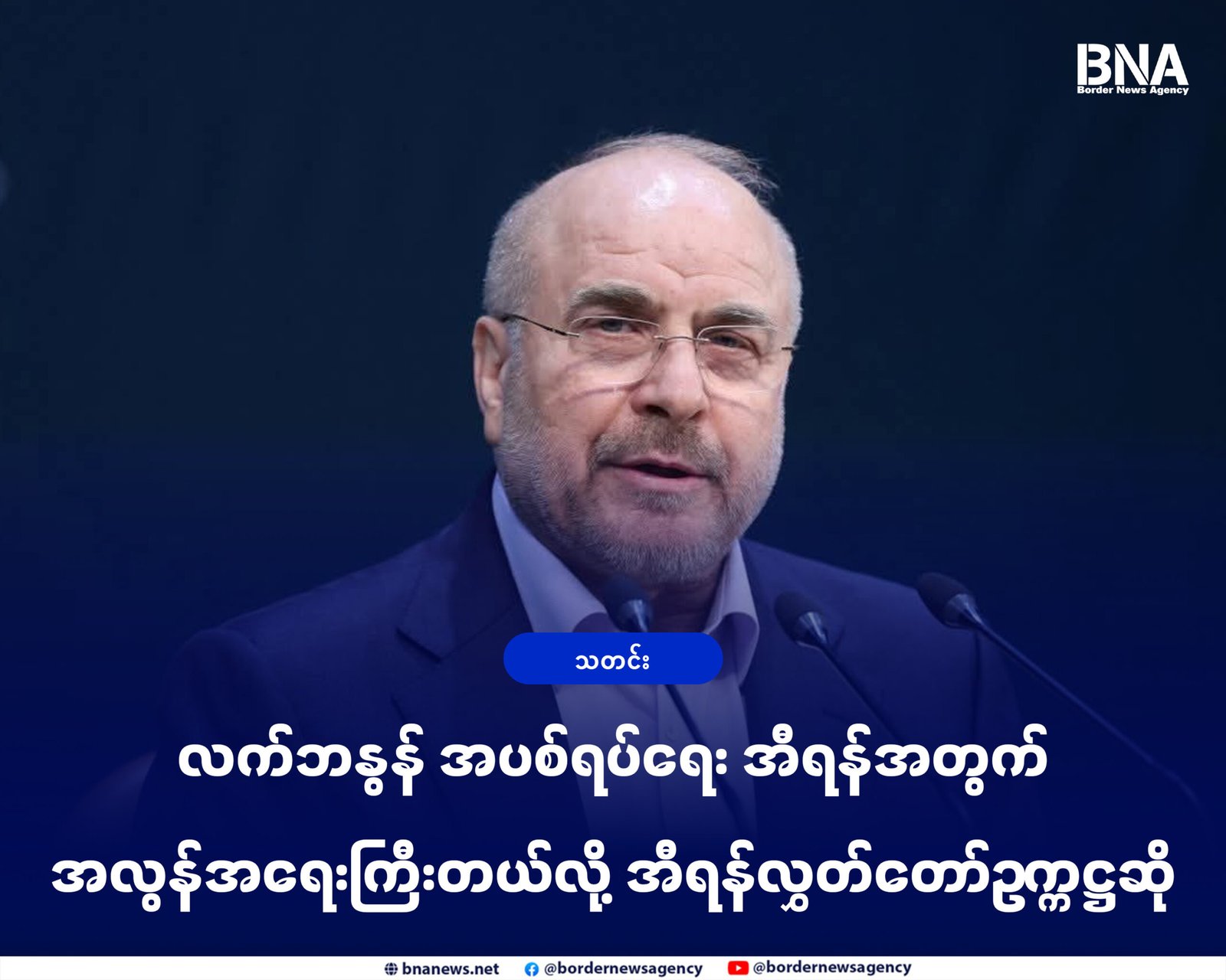 ​လက်ဘနွန်နိုင်ငံမှာ အပစ်အခတ်ရပ်စဲဖို့ဟာ အီရန်နိုင်ငံအတွက်လက်ရှိဖြစ်ပွားနေတဲ့ စစ်ပွဲတွေရပ်တန့်ဖို့လောက်နီးပါး အရေးကြီးတယ်လို့ အီရန်လွှတ်တော်ဥက္ကဋ္ဌ မိုဟာမက် ဘေဂါ ဂါလီဘတ်ဖ်က ပြောကြားလိုက်ပါတယ်။