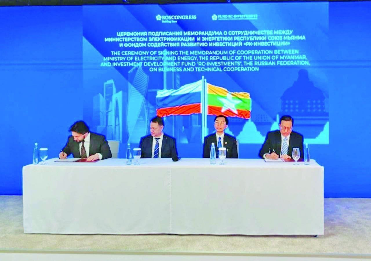 ရုရှားနိုင်ငံကနေမြန်မာနိုင်ငံကို ရေနံစိမ်းနဲ့ ရေနံထွက်ပစ္စည်းတွေ ရေရှည်ထောက်ပံ့ပေးနိုင်ဖို့အပါအဝင် လျှပ်စစ်နဲ့ စွမ်းအင်ကဏ္ဍမှာ ပူးပေါင်းဆောင်ရွက်ဖို့ လျှပ်စစ်နဲ့ စွမ်းအင်ဝန်ကြီးဌာနနဲ့ ရုရှားနိုင်ငံ Investment Development Fund “RC Investments” တို့အကြား ပူးပေါင်းဆောင်ရွက်မှုစာချွန်လွှာ (MoC) ကို ဧပြီလ ၁၇ ရက်၊မနေ့ကလက်မှတ်ရေးထိုးခဲ့ကြပါတယ်။