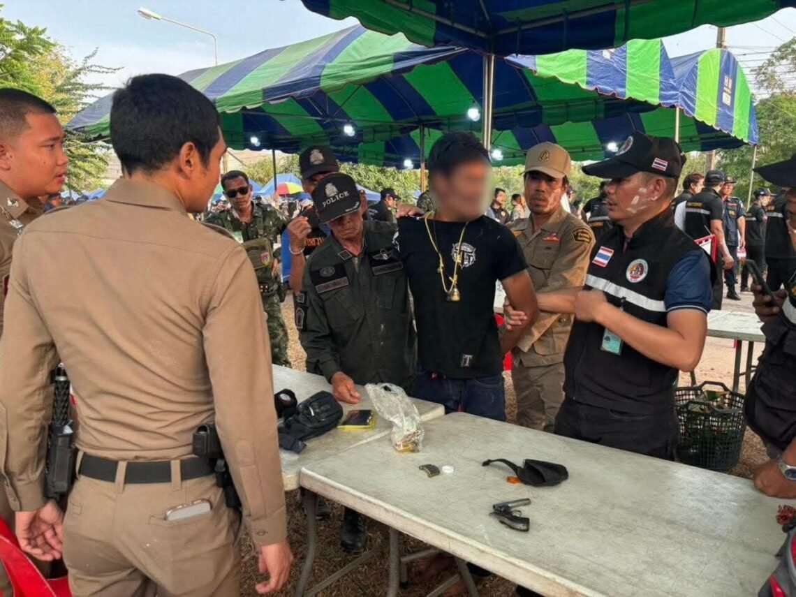 ထိုင်းနိုင်ငံ၊ ချွမ်ဖွန်ပြည်နယ်မှာ ပြုလုပ်တဲ့ သင်္ကြန်ပွဲတော်အတွင်း ကျည်အသင့်ထည့်ထားတဲ့ လက်လုပ်သေနတ်နဲ့အတူ မြန်မာအမျိုးသားတဦးကို ထိုင်းရဲတပ်ဖွဲ့က ဖမ်းဆီးလိုက်ပါတယ်။